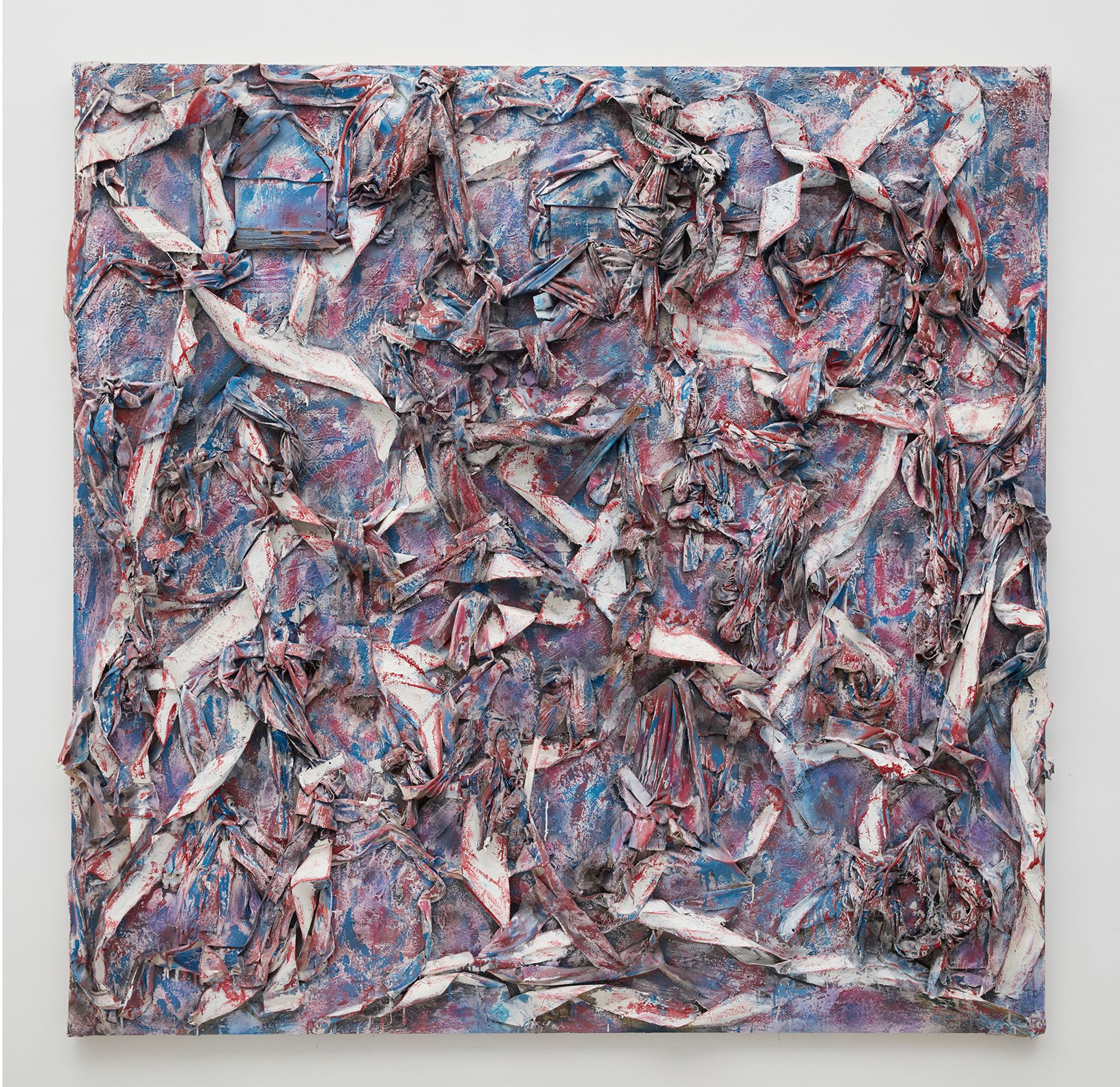 The gallery began working with Dial in October last year, and now represents his estate. The show takes the name of an abstract work Dial created in 2008 comprised of cloth, metal, enamel, and canvas on wood, spray-painted to resemble a mutilated American flag. “The title implies that we’re all here together,” says Turner. “So how do we work together, and how do we all prosper together within the chaos?”