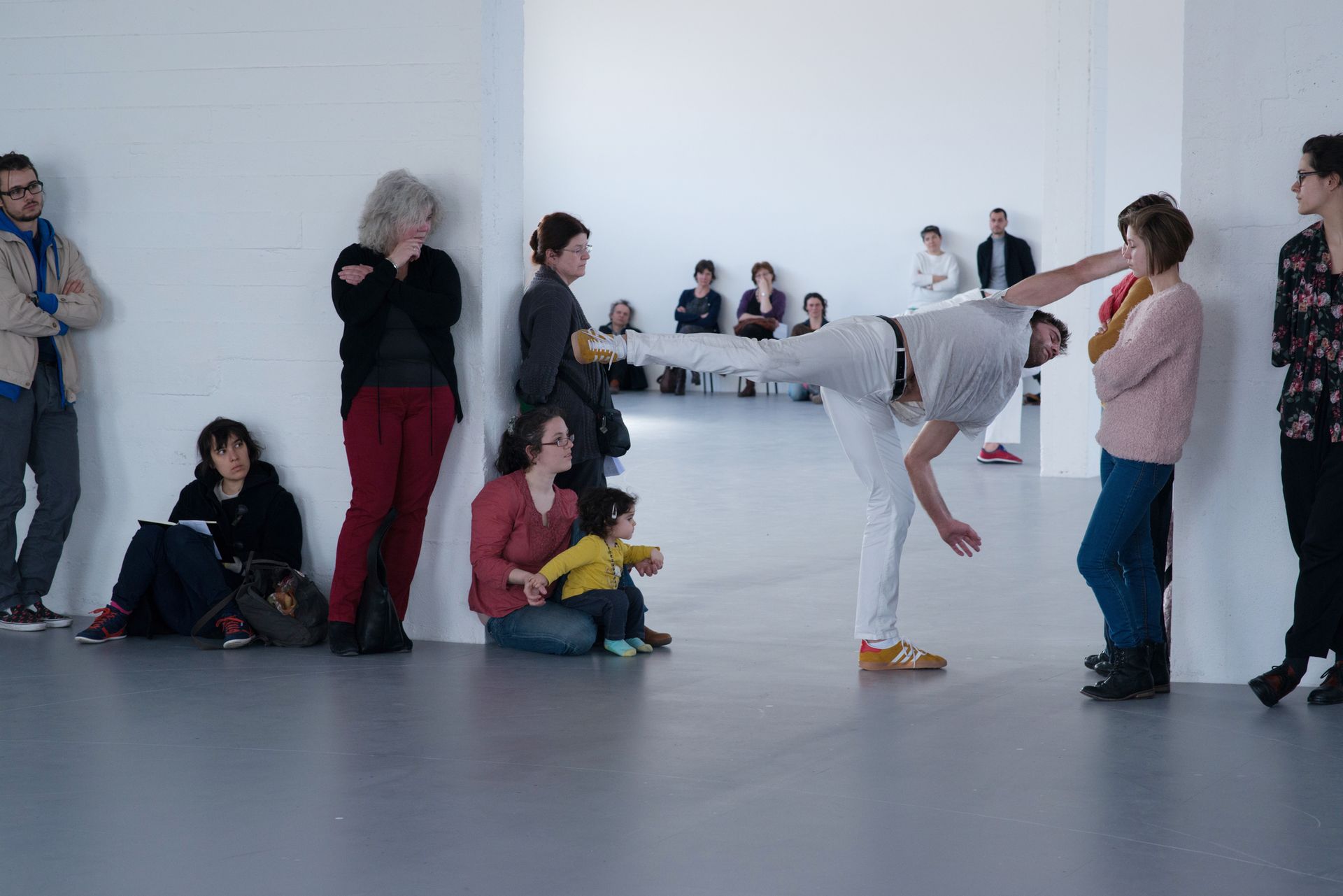 The movement of the audience can interfere with the choreography and change the perception of it, especially because one of the basic principles of the choreographic vocabulary in Work/Travail/Arbeid is walking. There is a big difference in coming from a dark, black space into daylight in the Turbine Hall. Where normally, in the theatre, I am a dancer and you look at me; in the museum, I look at you and you look back—it goes in two directions.