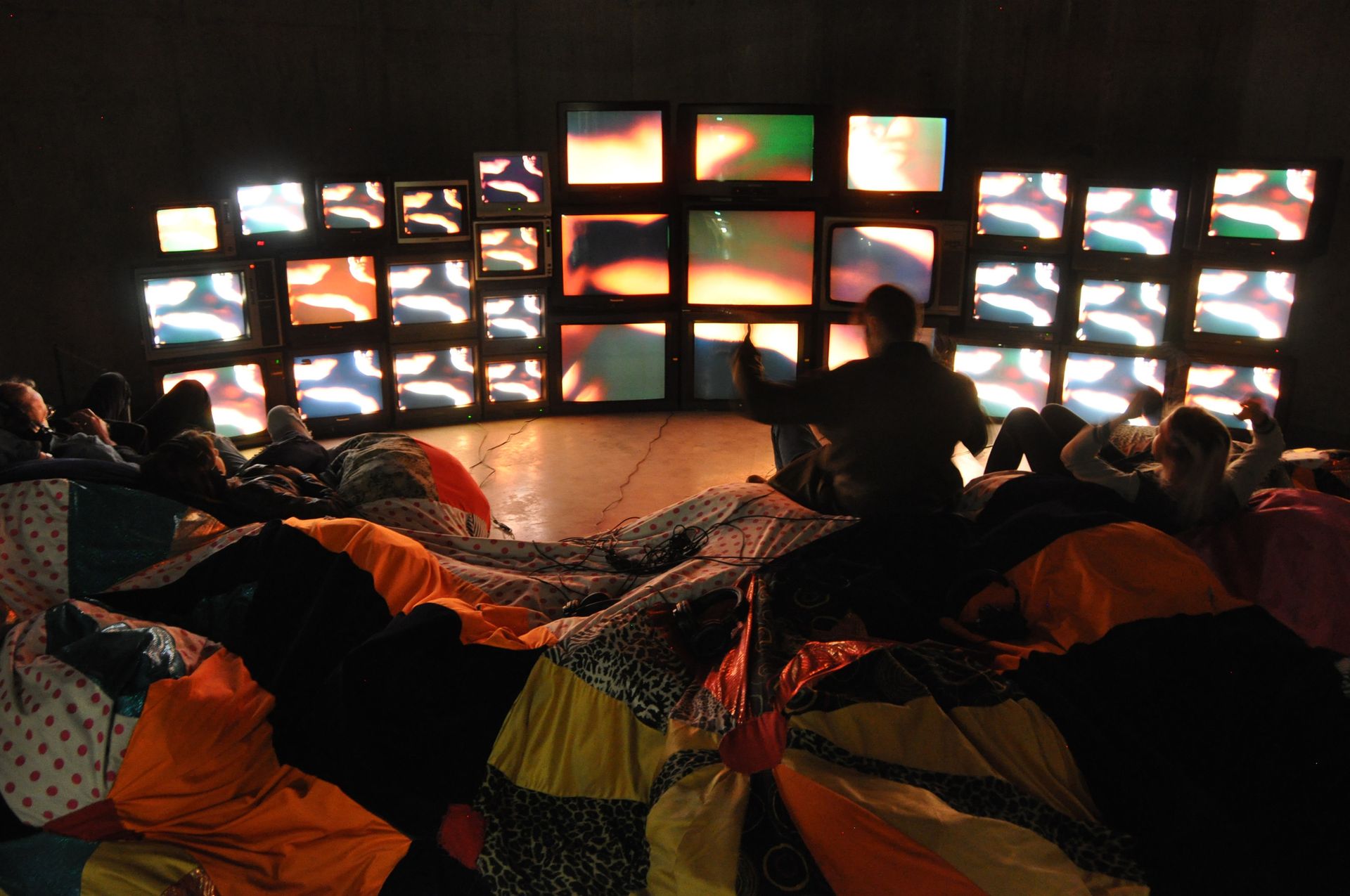 A video by Marvin Gaye Chetwynd on show in the oil tanks downstairs