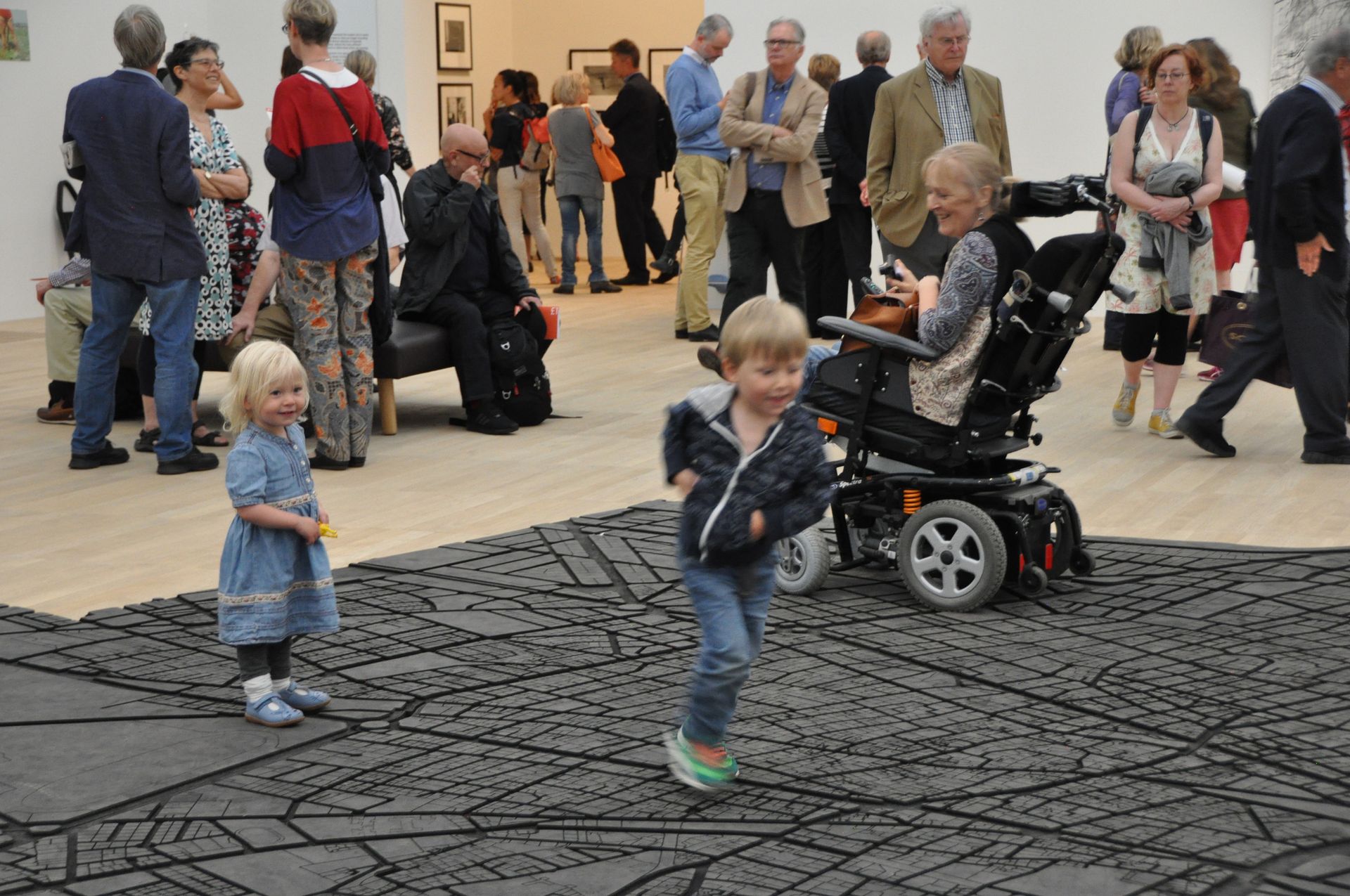 Children playing in galleries on preview day