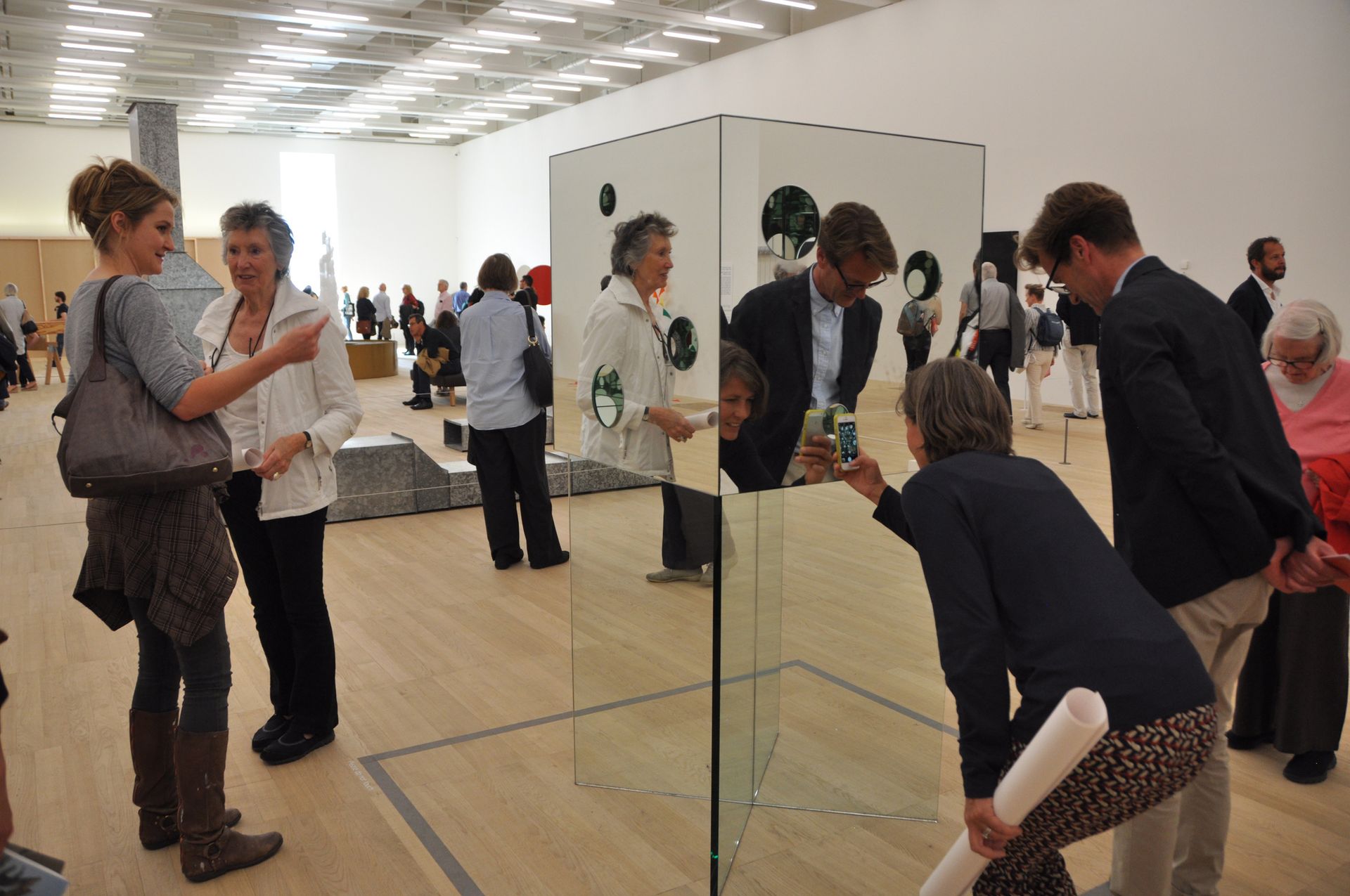 Visitors admiring Mary Martin’s, Inversions, 1966