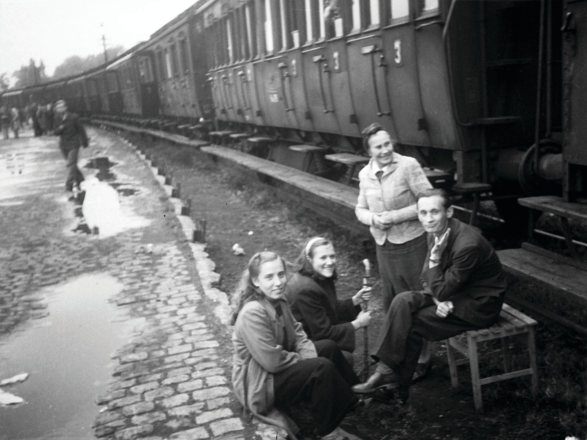 A 1948 photo by Jonas Mekas of refugees at Kassel railway station, Germany, waiting to be transported to another displaced persons camp. His work will be on at Art Basel with James Fuentes