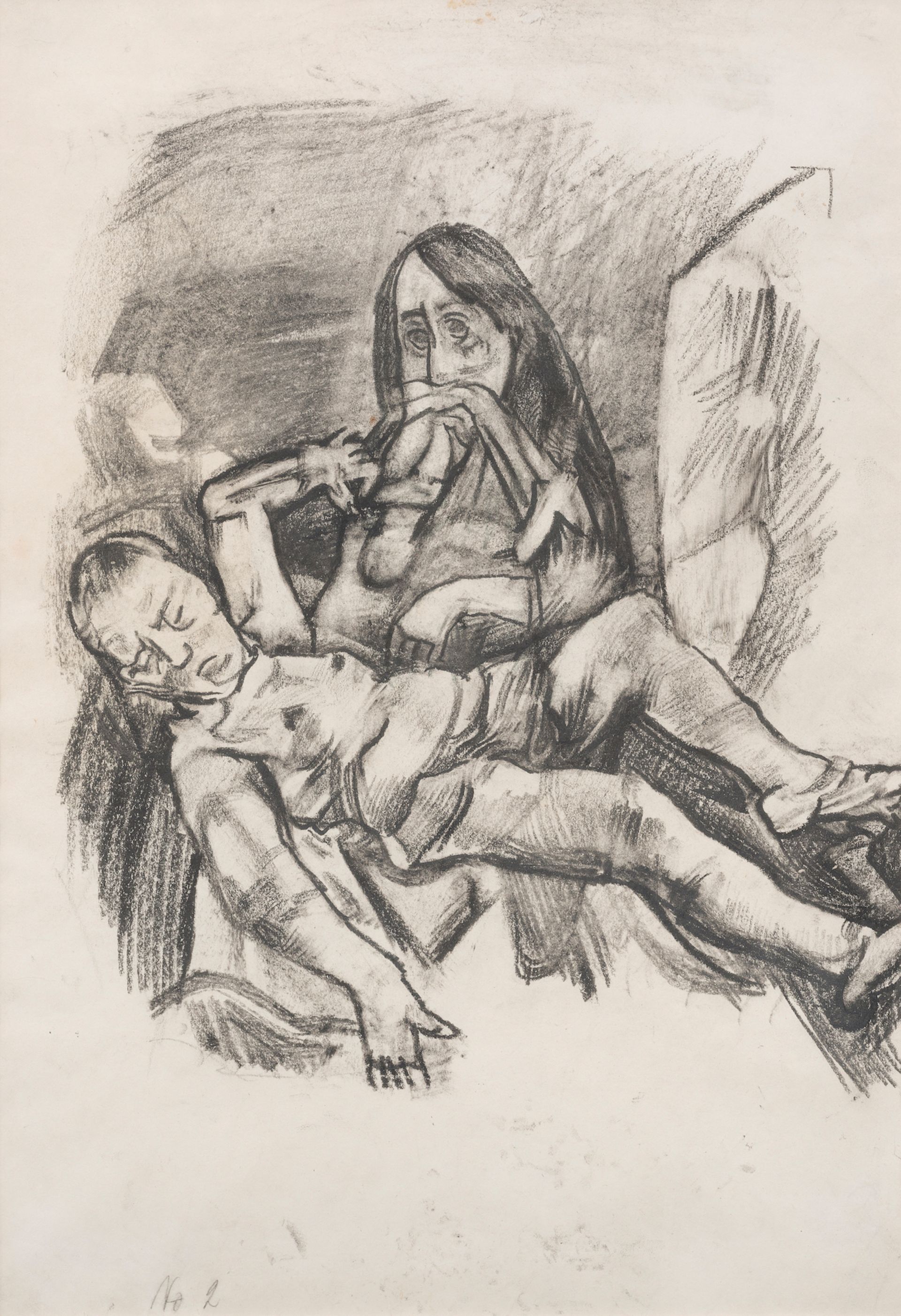 Oskar Kokoschka, Pietà—“It is Enough” (1914) In his early 20s, Kokoschka had a tortured love affair with Alma Mahler, the widow of the composer Gustav Mahler and the “most beautiful woman in Vienna”, according to the dealer Jane Kallir. The Austrian artist completed this series as their relationship was falling apart—and shortly before he commissioned a life-size, anatomically correct doll to remember her by. This charcoal drawing (just over $200,000) was included in an exhibition at Vienna’s Belvedere Museum (The Women of Klimt, Schiele and Kokoschka) earlier this year.• Galerie St. Etienne