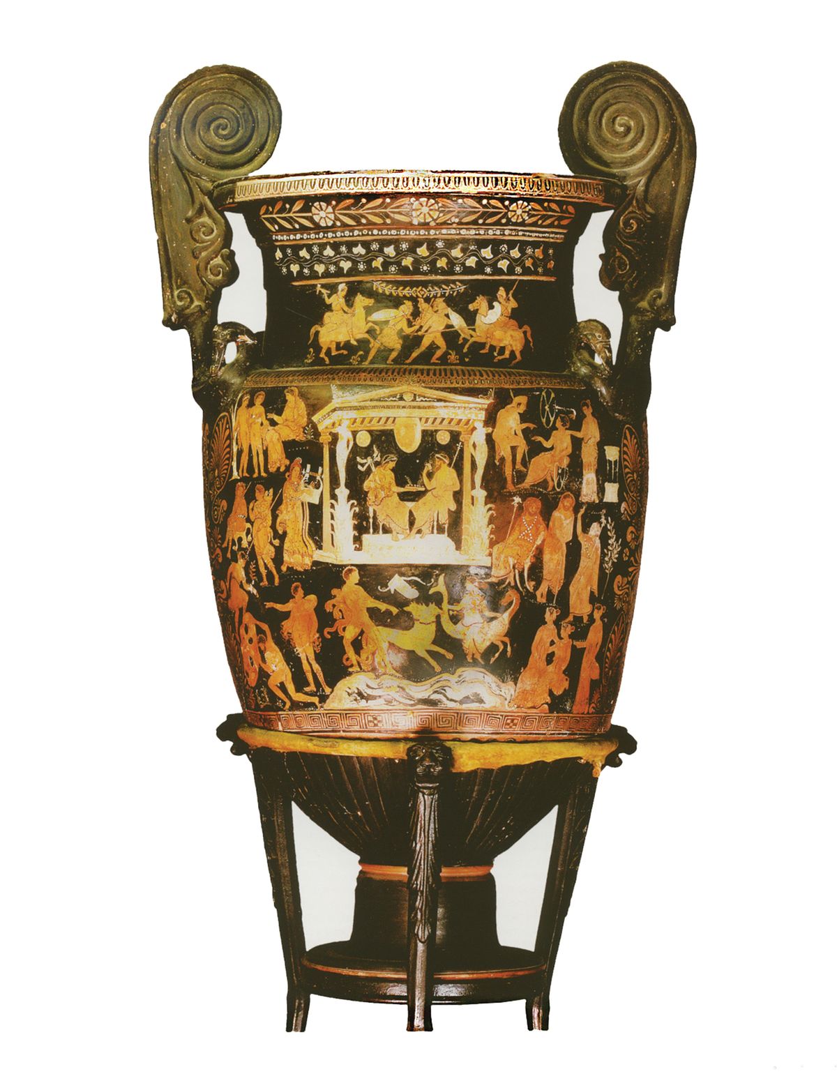 The National Archaeological Museum in Naples has sent a 2m-tall red-figure Apulian krater from its collection for conservation and temporary display at the Getty Villa in Los Angeles. The vase was produced in Taranto in around 350BC and depicts more than 20 mythological gods and heroes of the underworld, including Hades, Persephone, Orpheus and Herakles. The project, which is supported by the Getty’s Villa Council, renews the cultural exchange agreement signed by the Italian culture ministry and the J. Paul Getty Museum in 2007.