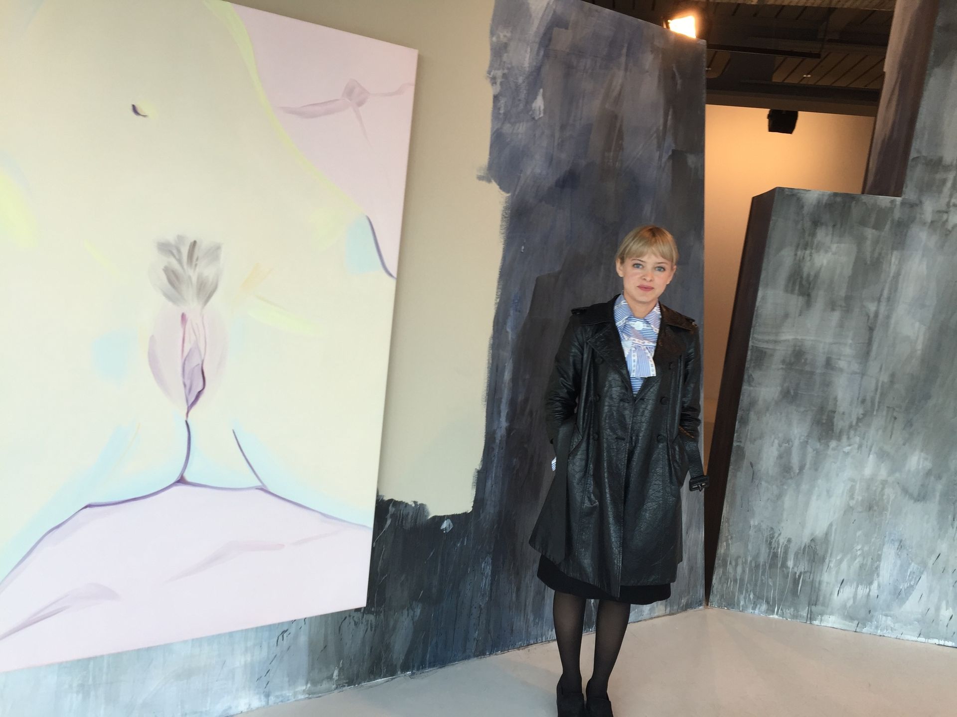 Once everyone had marched the route and shouted themselves hoarse (with much boo-ing outside No 10 Downing Street) it was then time to hit the trail for Art Night. This all night art-fest, organised by the Institute of Contemporary Arts and Unlimited Productions, transformed ten locations throughout the City of Westminster with installations and performances from 5pm on Saturday until the wee small hours of Sunday. Some of the spaces are normally inaccessible, such as the disused Jubilee line platforms at Charing Cross tube station which Korean artist Koo Jeong A had infused with beaming lights and the costly scent of the endangered Agar tree; or the shut-off rooms of Admiralty Arch, which had been anointed with squid ink and populated by bizarre guides, courtesy of the Turner Prize winning artist, Laure Prouvost. The Danish artist Nina Beier installed well-trained dogs and masked performers in a luxuriously generic show flat at 190 Strand. In the almost-refurbished brutalist building next door, which overlooks the Thames, Celia Hempton took advantage of the view (soon to be blotted out by another development) with her strikingly panoramic installation of paintings exploring the source of the river, including via the undulating bodies of her three river goddesses.