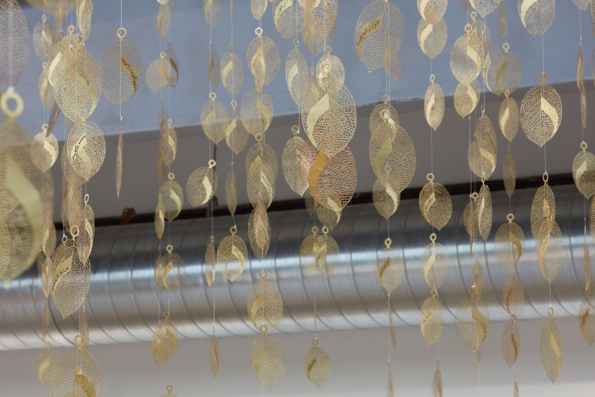 Come Thursday, the two-storey atrium of Minnesota Street Projects will be filled with an elegantly pointed sculpture by Manal AlDowayan: a cascade of paper-thin golden leaves that honour the ancestors of hundreds of Saudi Arabian women who participated in her project. They recreated their family trees through their matriarchal—and typically suppressed—lineages as far back as possible, writing the names of a female forebear on each leaf.