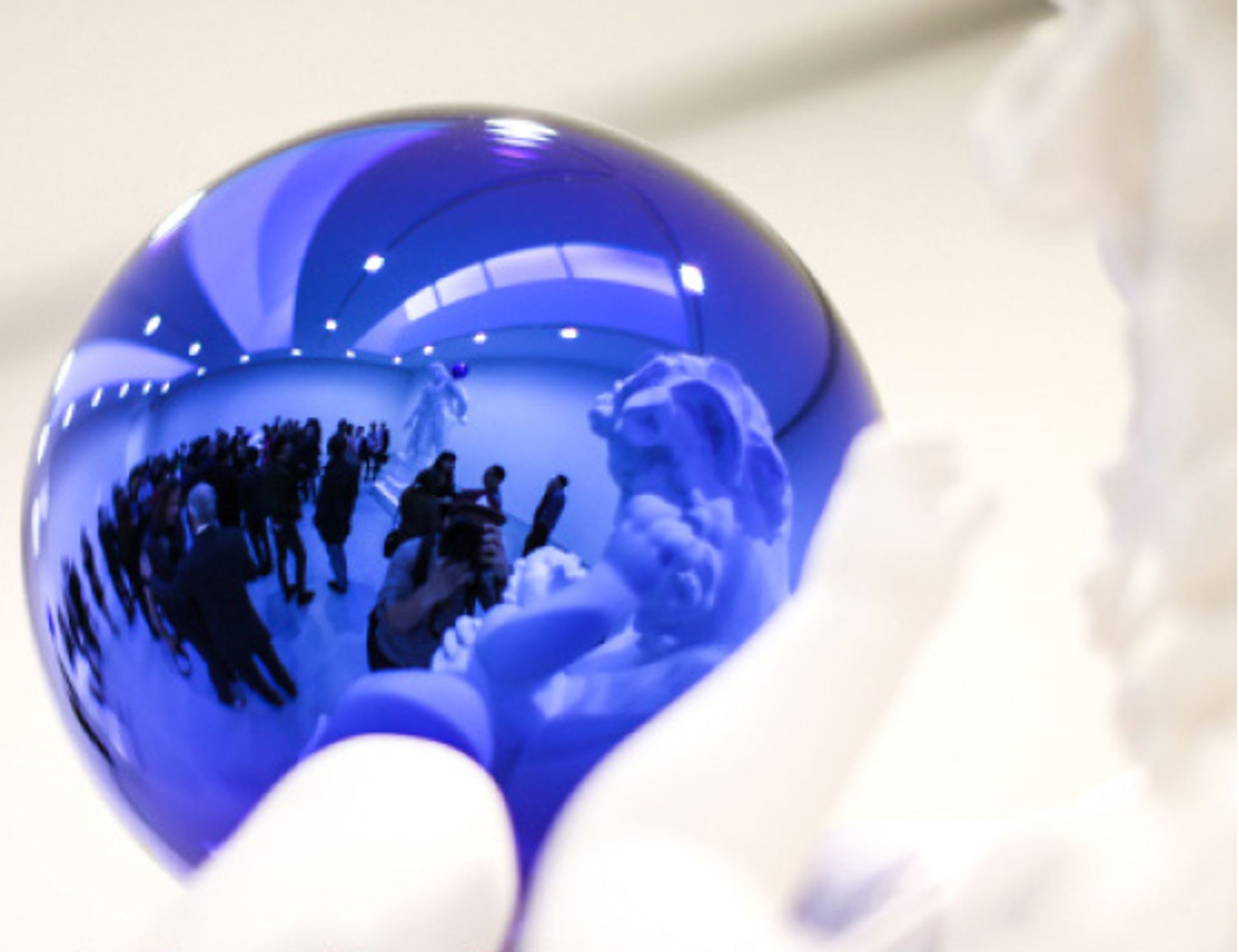 But the artist persisted, inviting Kandel to his exhibition of Gazing Ball sculptures at the David Zwirner Gallery in New York in 2013. The show, featuring classical sculptures with blue mirrored orbs, had an impact. “I went around and looked at them and said: ‘Wow, when you look at those statues and those crystal balls, you see yourself, so the beholder becomes part of the work of art.’ I sent him an email and he went off the fucking wall. He went wild!” The two later spoke together at a Nobel-sponsored panel in Stockholm.