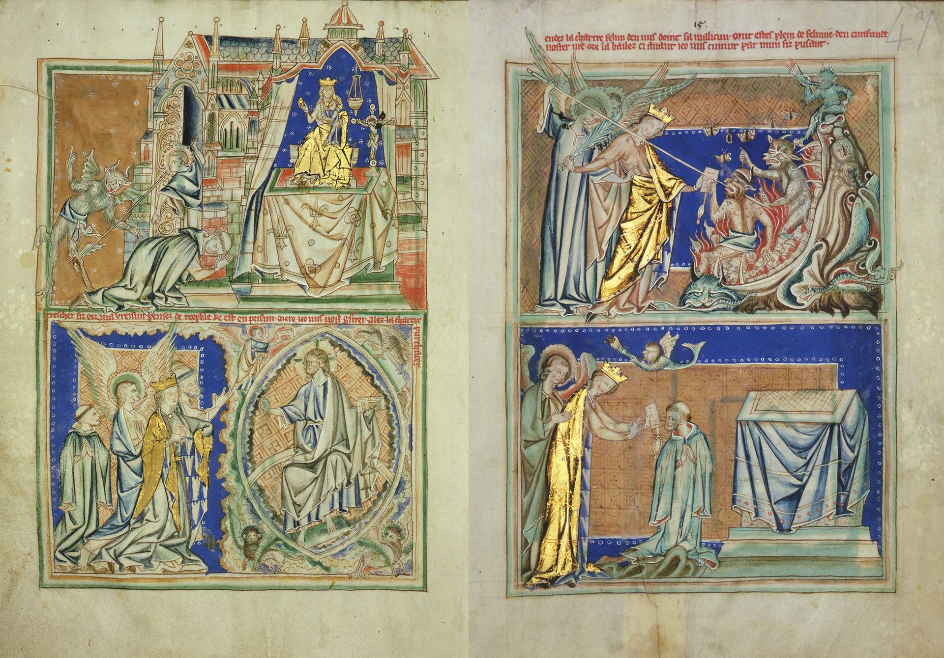 • The Lambeth Apocalypse, with its 78 images of St John the Evangelist’s visions, is one of the exhibition’s choice loans. The work brings illuminators’ technical skills to the fore and includes one of the earliest known examples of a red, translucent lacquer painted on the Virgin Mary’s gold robe to create shadows, more associated with 14th-century Italian painters. London’s Lambeth Palace has agreed that the Fitzwilliam can analyse the manuscript after this exhibition. (Other lenders have agreed the same.)