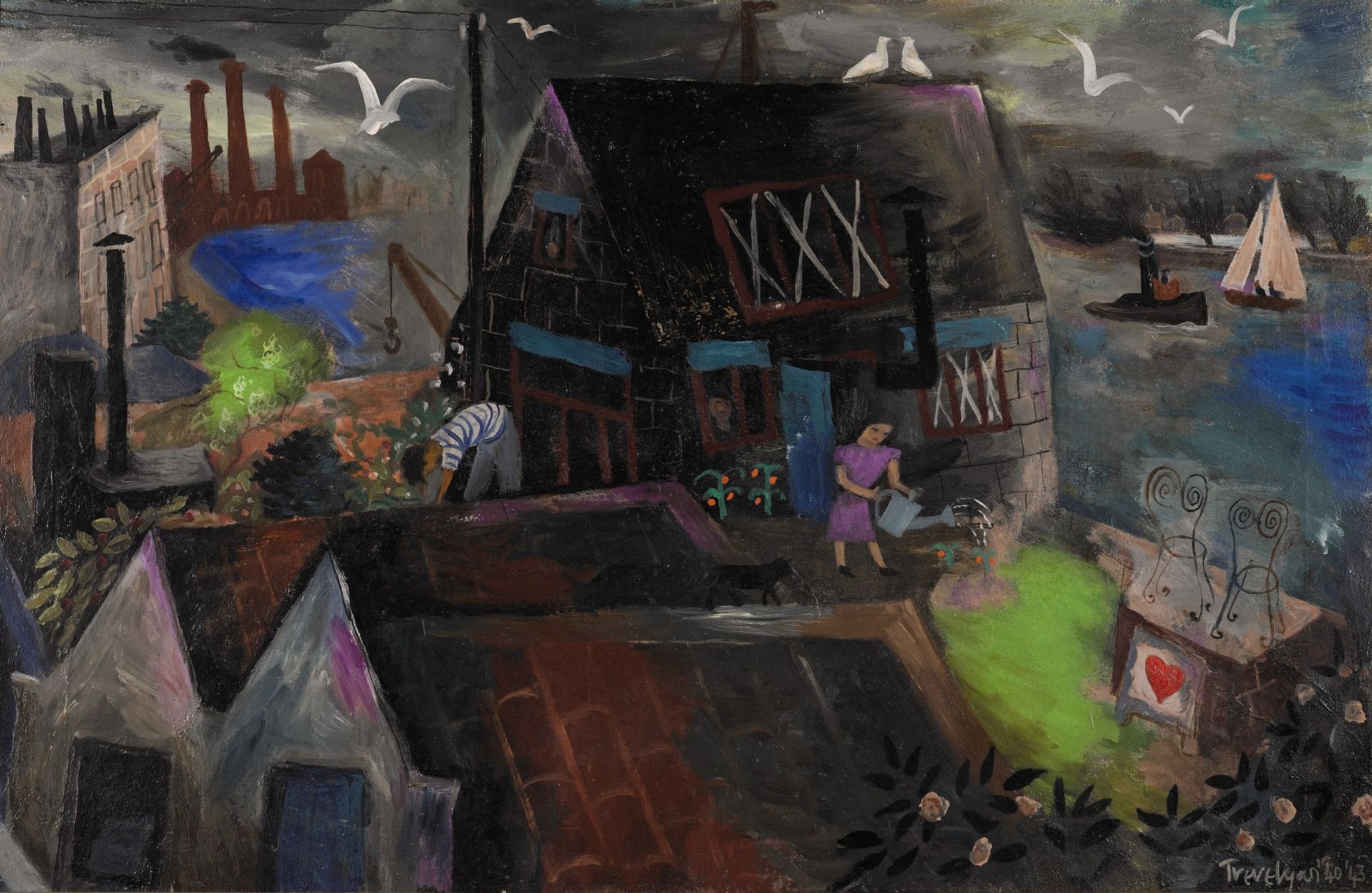 Mary Fedden and Julian Trevelyan, who met in 1949 when she was a student at the Slade and married in 1951, shared a studio at Durham Wharf in Hammersmith. They worked in the same room for the rest of their lives—Trevelyan died in 1988, aged 78, and Fedden in 2012, aged 96.