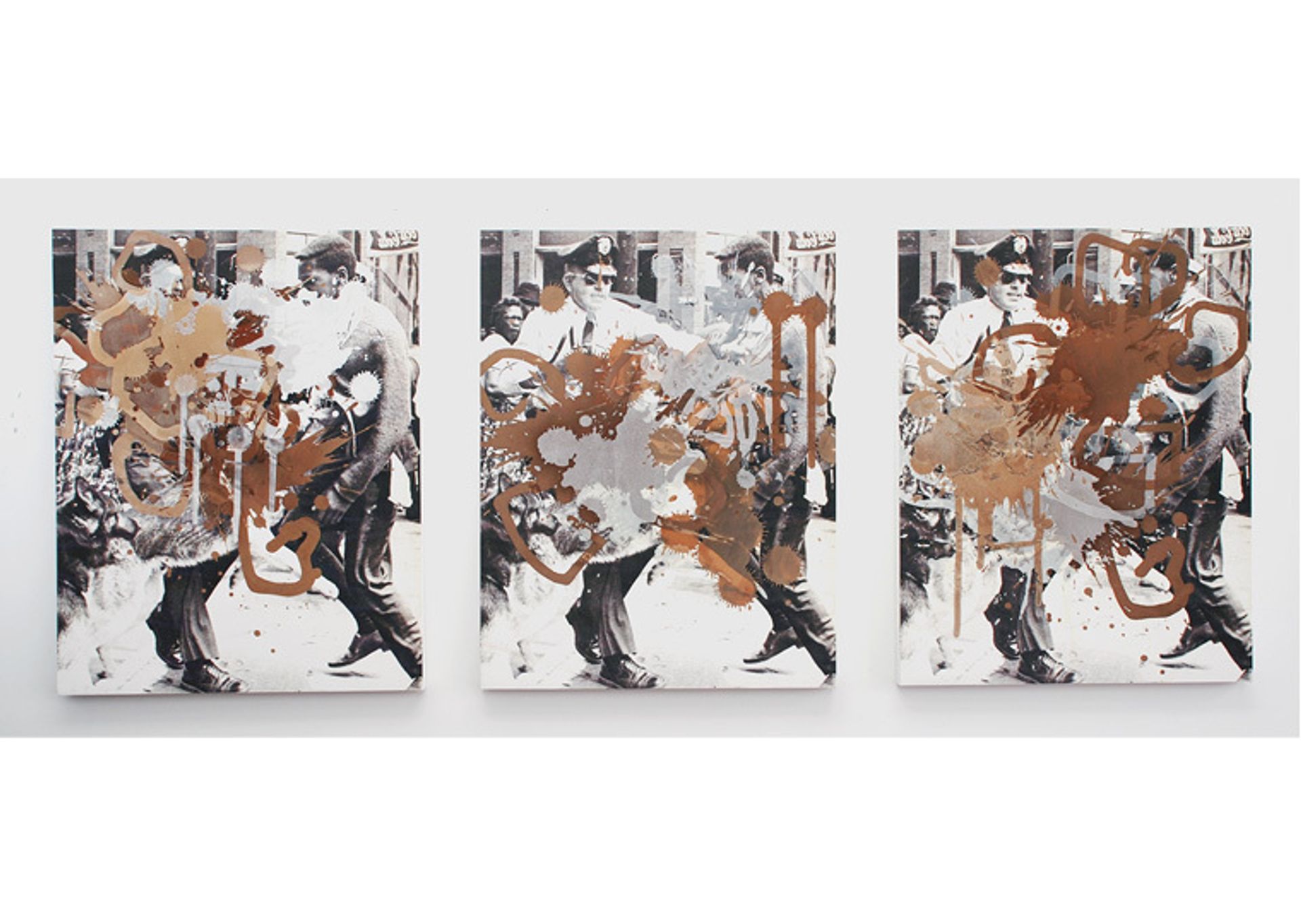 The show features a series of appropriation works by the Georgia-born Walker, who is white, called schema and Black Star Press. The latter is described on the museum’s website as “images of racial unrest that have been digitally printed on canvas, silkscreened with melted white, milk, and dark chocolate, and rotated in 90-degree increments”. The show also includes sexualised images of black women on magazine covers, smeared with toothpaste.