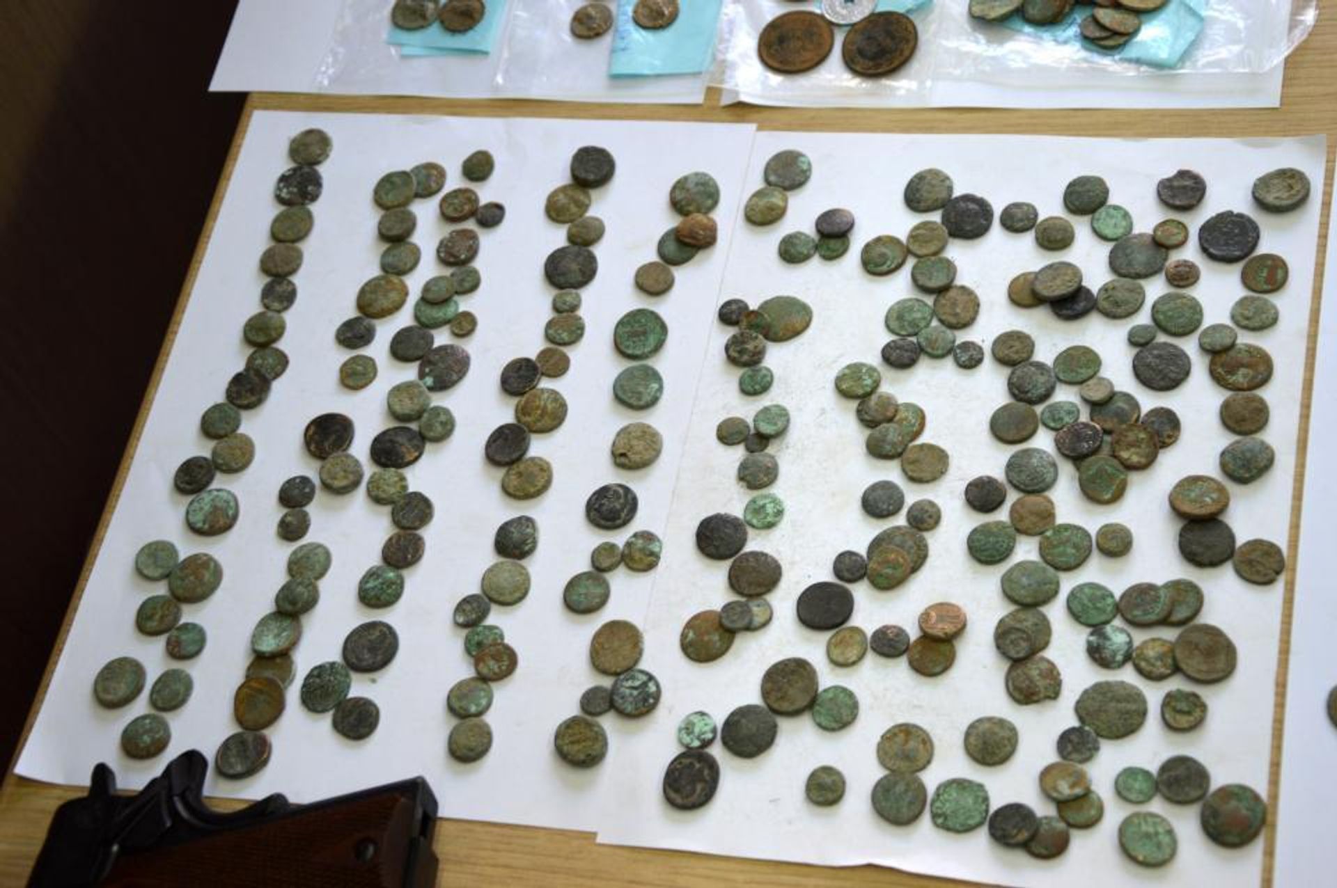 The two alleged ringleaders of the gang were arrested on Sunday at the Greek-Bulgarian border, and had almost 1,000 coins and small artefacts hidden in the bumper of their car. Police said they have recovered a cache of more than 2,000 objects, mostly coins, but including gold jewellery, bronze figurines, ancient glassware and some larger stone and marble statues. The antiquities were taken from sites across Greece and date from as early as the sixth century BC. Police also confiscated several metal detectors, a stash of guns and currency in euros, US dollars and Kuwaiti dinars, as well as counterfeit plates.