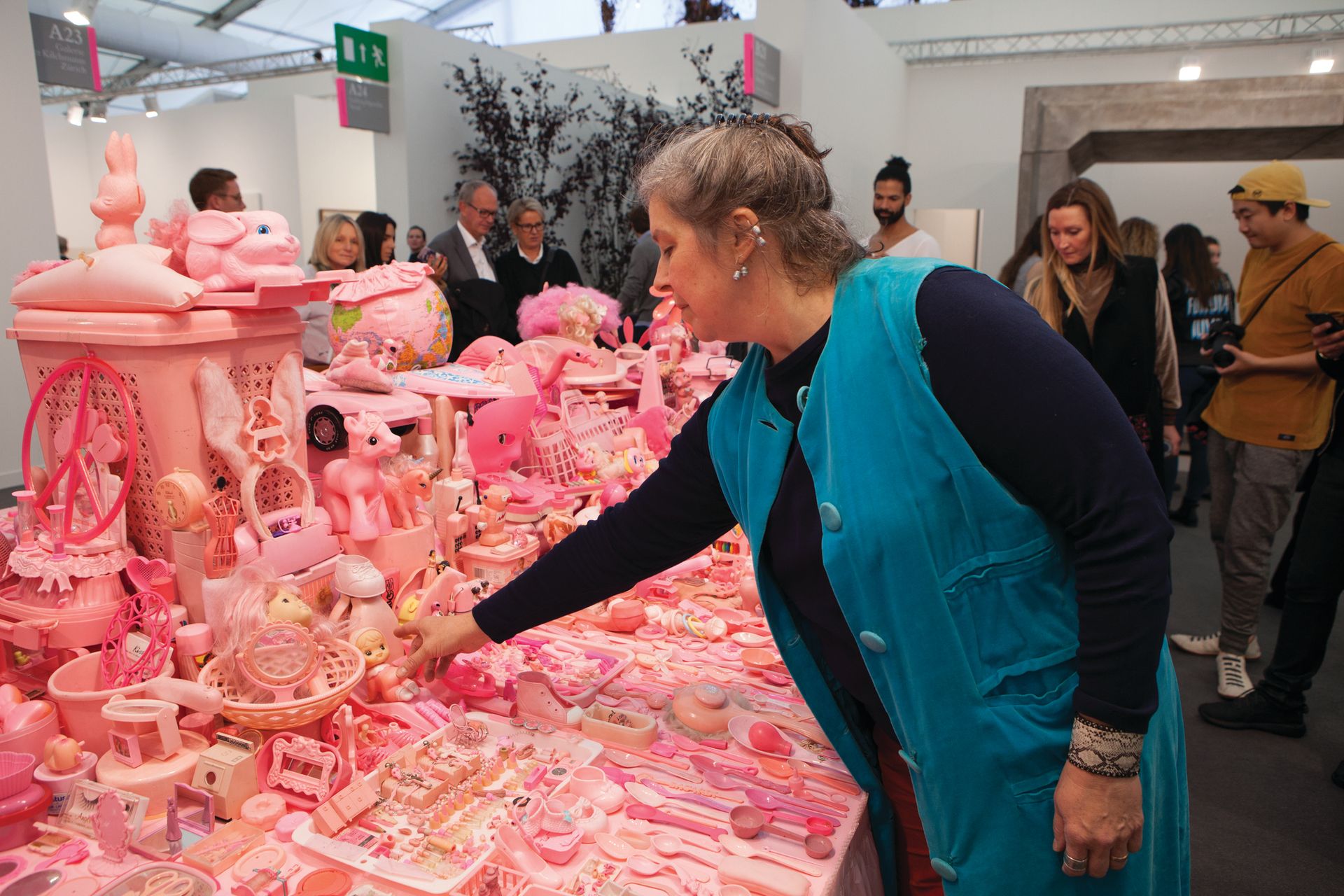 One of the most photographed pieces at Frieze London is Portia Munson’s installation Pink Project: Table (1994/2016), a tide of plastic objects massed across a table on the stand of New York’s PPOW Gallery. A multi-layered comment on the colour’s cultural connotations, Munson also describes it as a “little bit of a rebellious response” to her sombre tutors at Cooper Union art school, who included Vito Acconci and Hans Haacke. She was very happy that the work was first shown in the New Museum’s Bad Girls exhibition in 1994. But Instagrammers beware: this visual overload includes not only such garishly girlie products as hair clips, toy ponies, combs, cosmetics and cleaning products, but also the darker underbelly of pink, in the form of discarded crack-cocaine phials and sex toys to service every orifice imaginable. Perhaps not quite so pretty in pink after all.