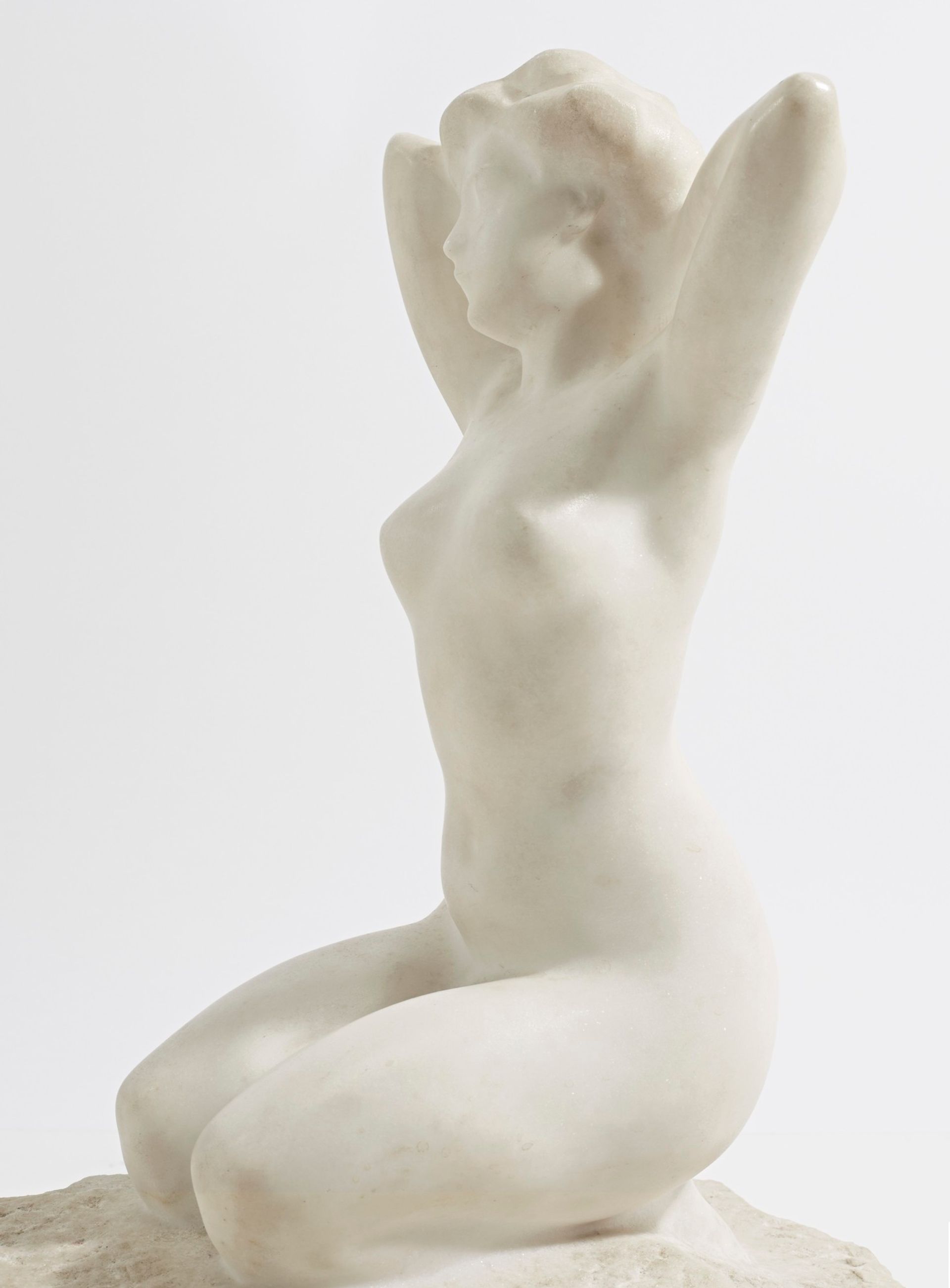A rare piece in marble owned by Delon, Femme à Genoux, has an estimate of €80,000-€120,000. The work was shown at the ninth Venice Biennale in 1910. Delon also consigned more than 30 works by Bugatti to a Sotheby’s sale in London in 1990.