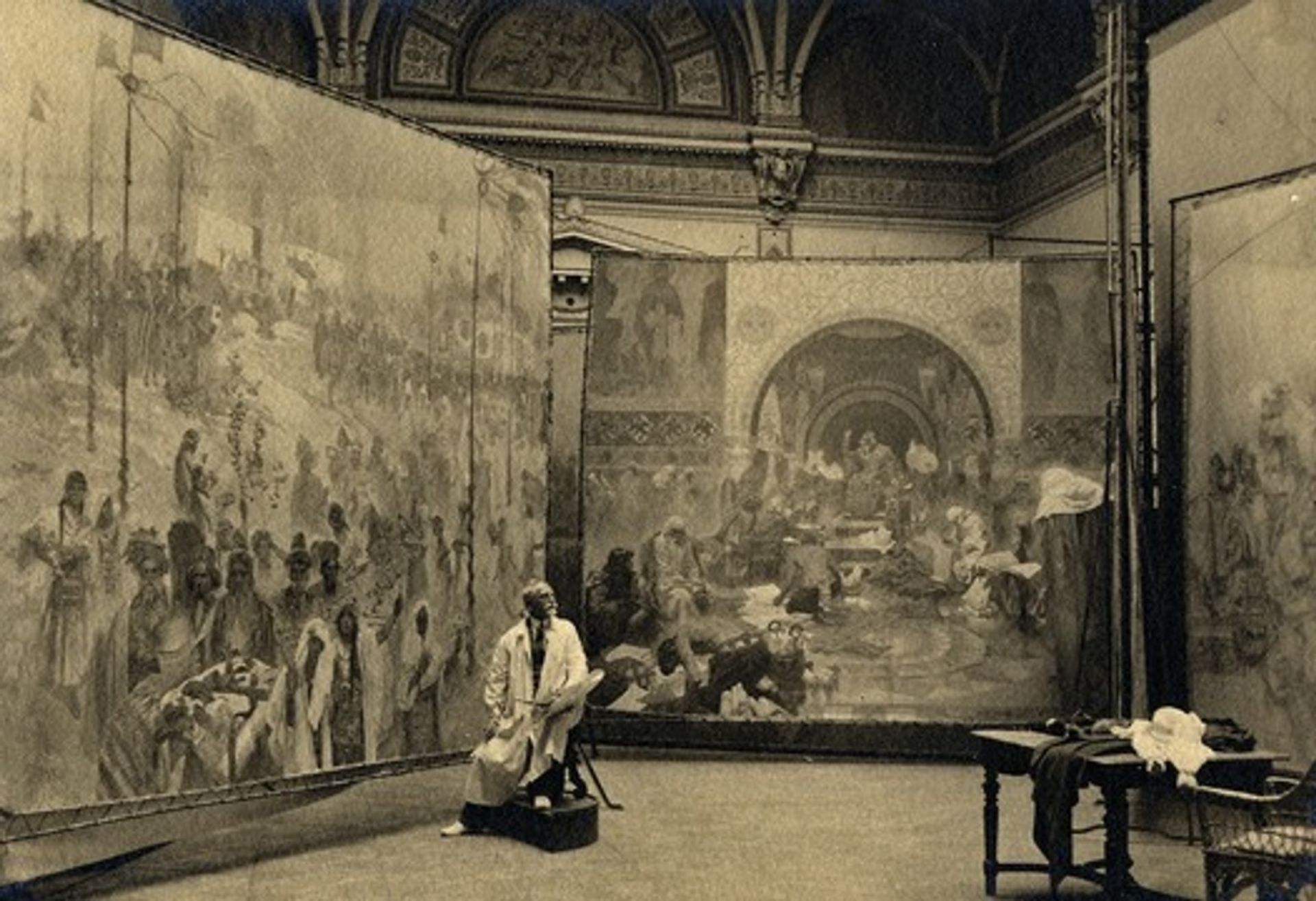 Alphonse Mucha with the Slav Epic in the 1920s © Mucha Trust 2016