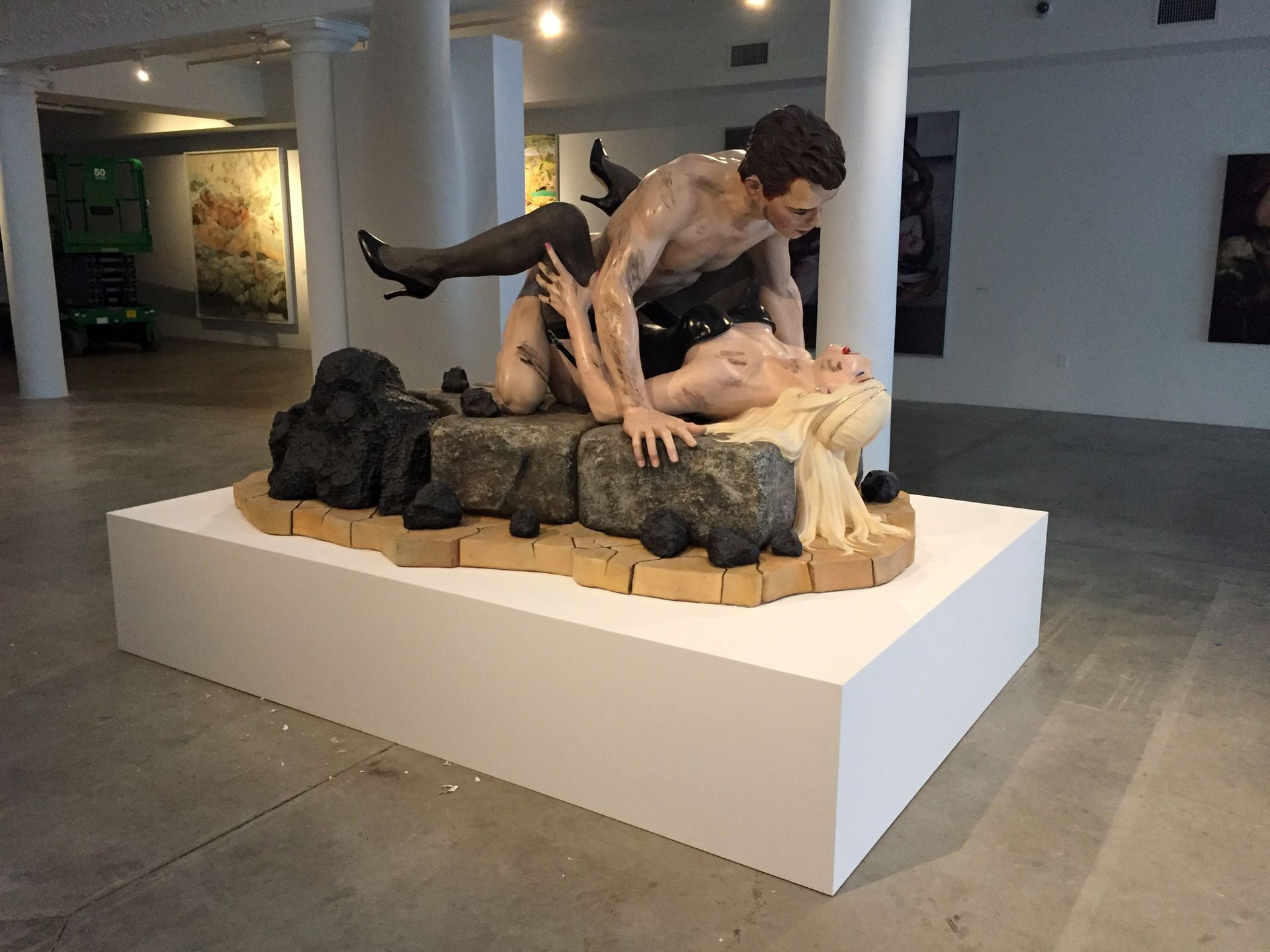 There are all sorts of racy works in Desire (until 4 December), a show at the Moore building in the Design District, co-organised by the dealer Larry Gagosian and the art-world stalwart Jeffrey Deitch. Diana Widmaier-Picasso, the granddaughter of the Spanish artist, has brought together works by more than 50 artists that explore “Modern and contemporary approaches to eroticism in art”. More prudish visitors might be shocked by Richard Prince’s Spiritual America (1983), a highly provocative image showing a ten-year-old Brooke Shields naked and heavily made up. (Tate Modern withdrew the piece from an exhibition in 2009.) A visitor to the private view was also taken aback by Jeff Koons’s physique, as seen in his 1991 sculpture Dirty—Jeff on Top (1991). The piece, on loan from a private German collection, shows the athletic artist having sex with his ex-wife, La Cicciolina. And Koons’s virile appendage certainly got the crowds talking at the VIP preview, with one guest overheard exclaiming: “That is one mighty fine wiener he’s got there.”
