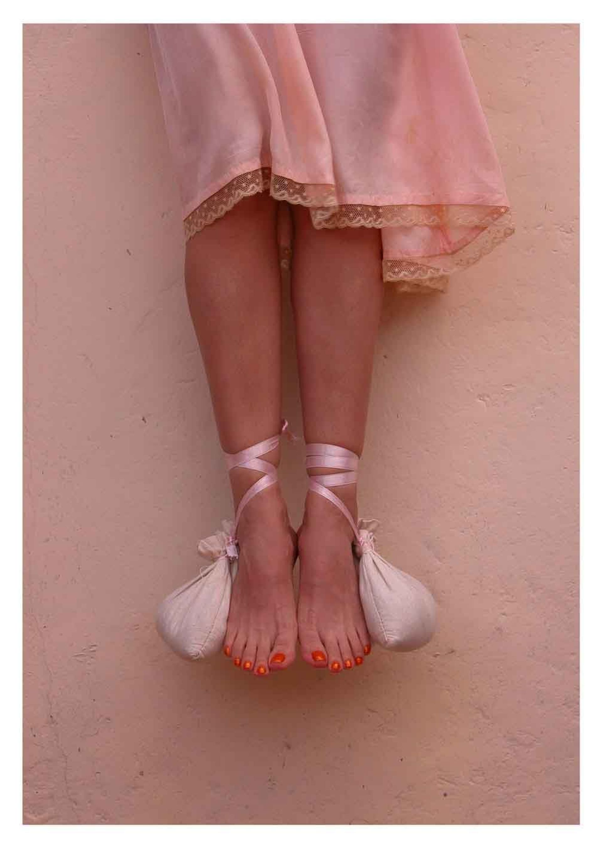 The chalcographic print Seremos como el Che (We will be like Che, 1993) by Sandra Ramos, for example, symbolises hope in the face of Cuba’s harsh economic reality. A photograph by Cirenaica Moreira, No soy yo, es mi cuerpo el eque recuerda (It is not I, it is my body that remembers, 2003-06) shows a woman’s legs weighed down by pink sandbags fastened with ribbon, like ballerina slippers.