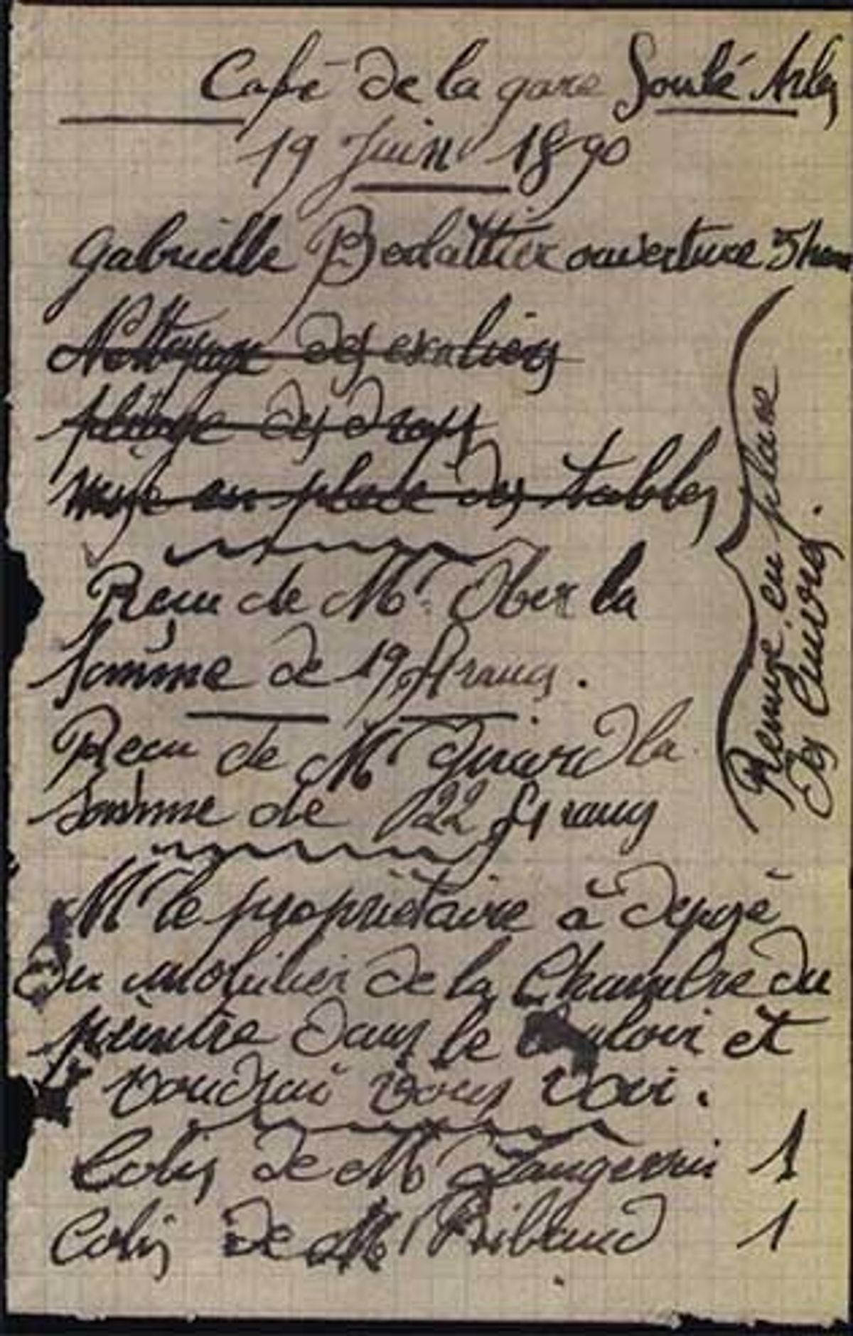 On the provenance, Welsh-Ovcharov cites as key evidence a diary notebook apparently used in the Café de la Gare which records that Van Gogh gave the sketches to the café owners Joseph and Marie Ginoux. The museum statement reveals that in 2012 it was shown an entry dated 19 June 1888, stating that “the owner has placed the painter’s bedroom furniture in the hallway and would like to see you”. However, this sheet was not published in the new book, which instead reproduces another page dated 10 June with virtually the same phrase. It would be very curious for the same phrase to be repeated nine days later in the diary and the museum experts therefore conclude that the notebook is “unreliable”.