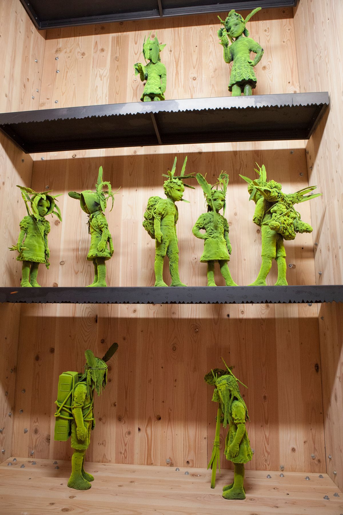The New York-based dealer Jason Jacques has collaborated with Digifabshop to create a treehouse-like display for contemporary ceramics by international artists including Beate Kuhn, Gareth Mason and Eric Serritella. Most at home are the Finnish artist Kim Simonsson’s mossy ceramic sculptures of children wearing feathered headdresses. They peer down eerily from their shelves “like little wood sprites”, Jacques says.
