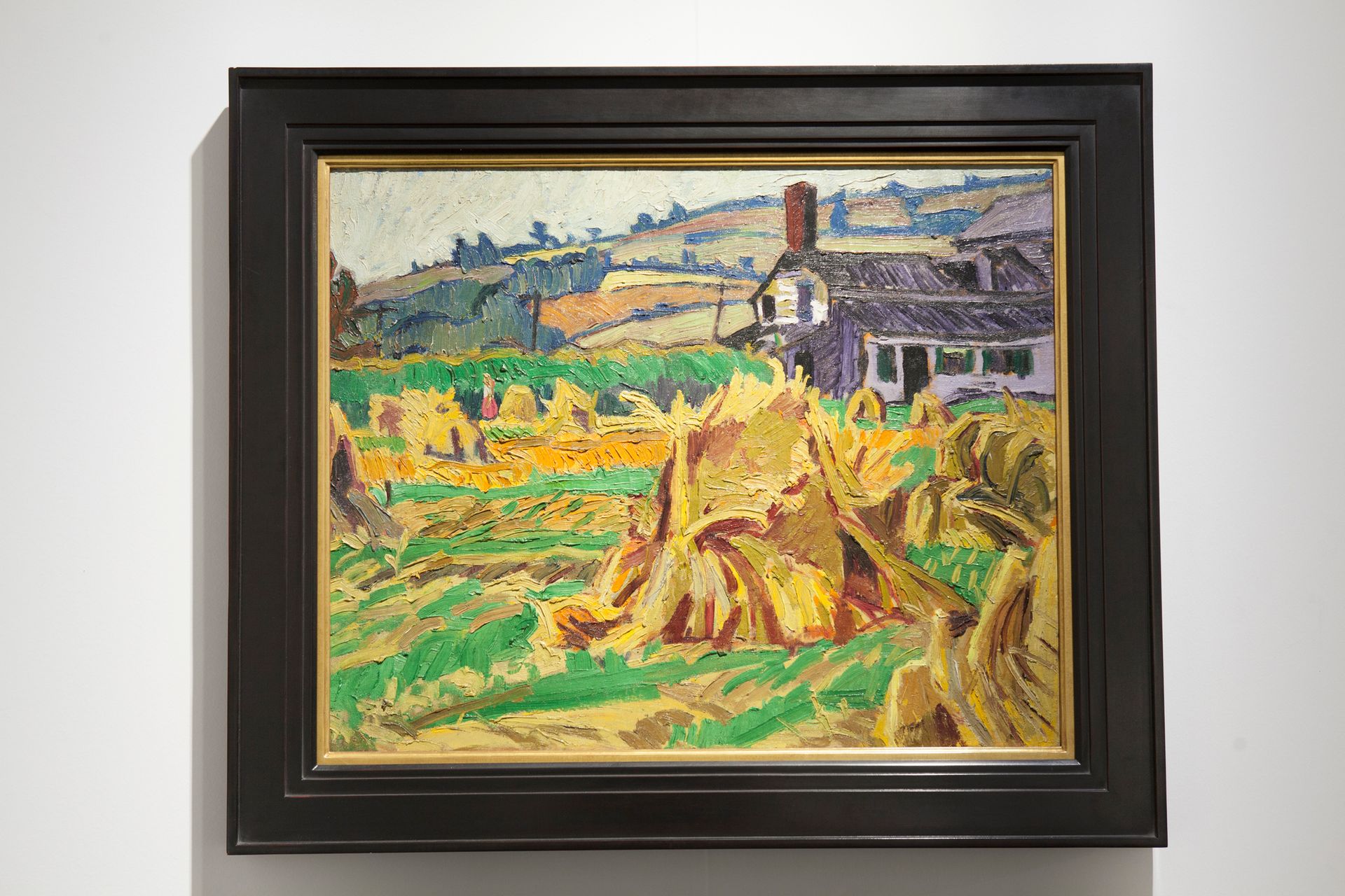 Early in his career, Stuart Davis was enthralled by Vincent van Gogh, “but it wasn’t just a phase”, Cooper says. The US painter’s early interest in the Dutch post-Impressionist never deserted him, partly because Davis was a landscape and still-life painter. “But he worked even more quickly—there’s a lot of wet-on-wet technique in this painting—whereas Van Gogh made most of his paintings more deliberately.” Although this work speaks to Davis’s burgeoning self-confidence, it left significant room for growth. “This one is still a little immature,” Cooper says. “The yellow/purple complementarity is straight out of a textbook, and that warm brown chimney is more naturalist, an anomaly, as if out of a painting by Robert Henri [one of Davis’s teachers].”