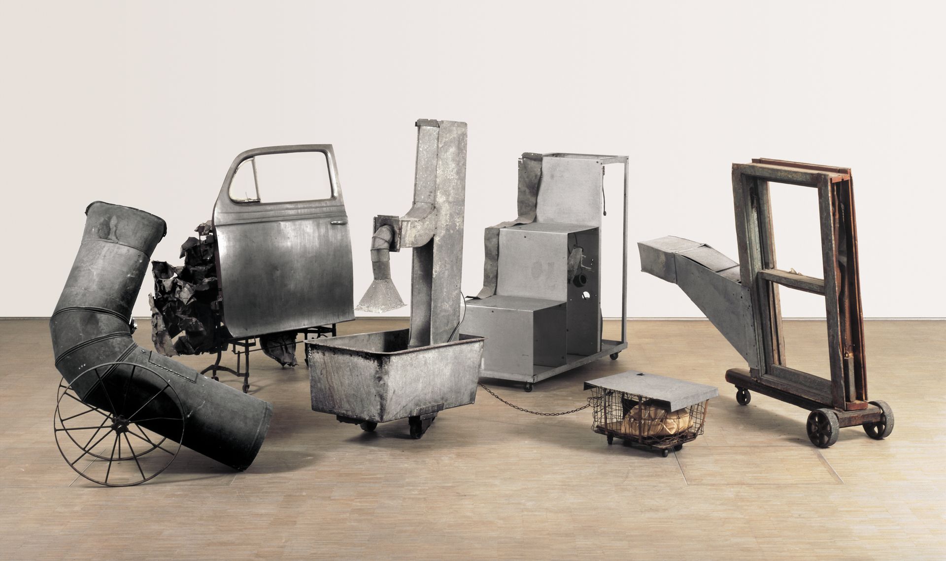 You might hear this installation before you see it. Rauschenberg collaborated with a team of engineers to conceal five radios inside assemblages made from a car door, a ventilation duct and other industrial metal objects. The work uses a transistorised wireless microphone system—cutting edge for the time—to emit the steady hum of AM radio. The title, Oracle, is fitting because the work “combines cast-off parts of machines with hints of our technological future”, Dickerman says. While on display in its permanent home at the Centre Pompidou in Paris, the work spouts French. During its tour to London, New York and San Francisco, it will tune into local English-language stations.