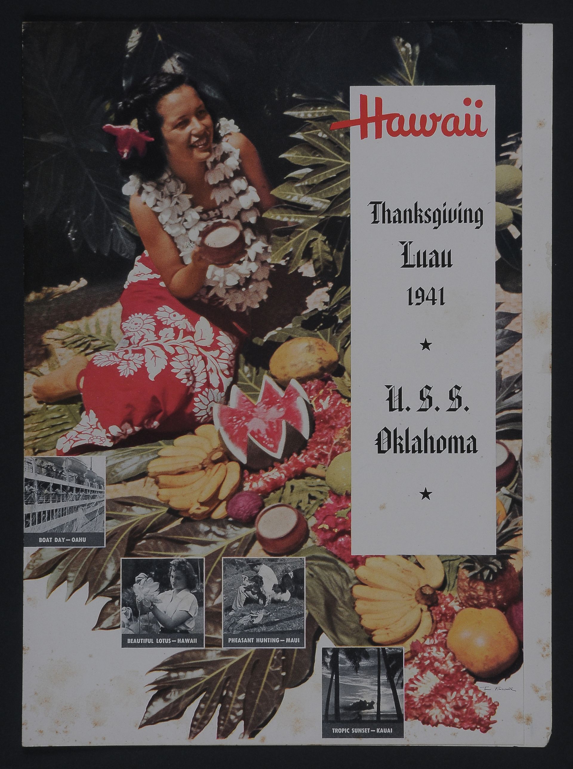 One way the show conveys the sense of shock that hit the country is by illustrating the jolly atmosphere in Pearl Harbor and nearby Honolulu shortly before the attack. A colourful announcement for the 1941 Thanksgiving luau on the battleship USS Oklahoma, featuring a hula girl and a lush spread of tropical fruit, is juxtaposed with a photograph of the torpedoed vessel, on which 429 crew members died. This encapsulates “that contrast of going from paradise to hell overnight”, Rendell says.