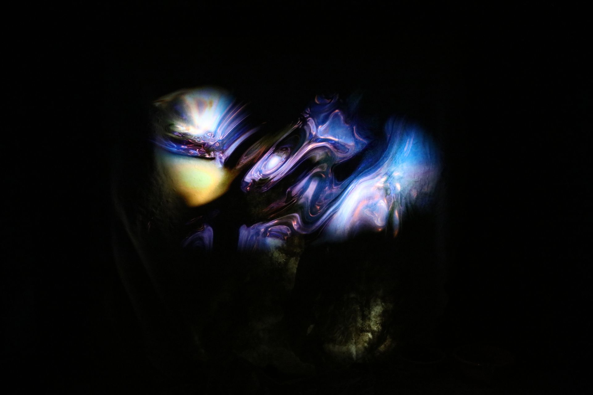 Incorporating film, sculpture and performance (at the opening the artist served visitors artichoke wine in a riff on traditional Asian tea ceremonies), the piece culminates with a virtual reality experience in a womb-like chamber where an Oculus Rift headset transports you to an abstract, multi-coloured landscape.