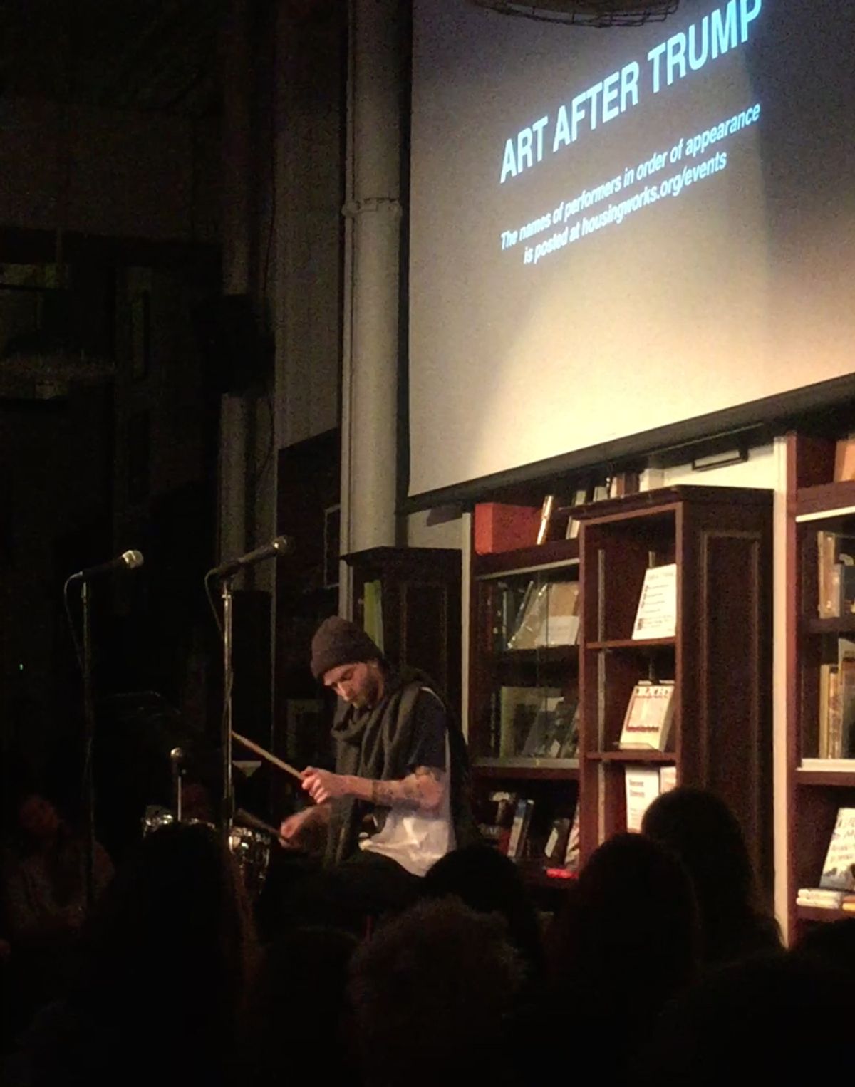 This week, the New York bookstore of Housing Works—a non-profit that fights HIV/Aids and homelessness—hosted a six-hour marathon of performances, Art After Trump, in response to the shockwave of the US presidential election. Around 150 artists, including the conceptual artist Kameelah Janan Rasheed, the writer Amy Rose Spiegel and the writer and actress Tavi Gevinson, gave two-minute responses to the election that ranged from speeches to musical performances. Mikola De Roo, the Housing Works vice president for communications and marketing, expressed a sentiment of hope at the event. “One thing that has been helping me grapple with the uncertainty and fears of futility after the election is that, at its most effective, art and activism share a foundation of empathy—something that our current political climate is lacking”, she said, “and that I’m sure we will see more of in our art, activism and personal lives in the near future.”