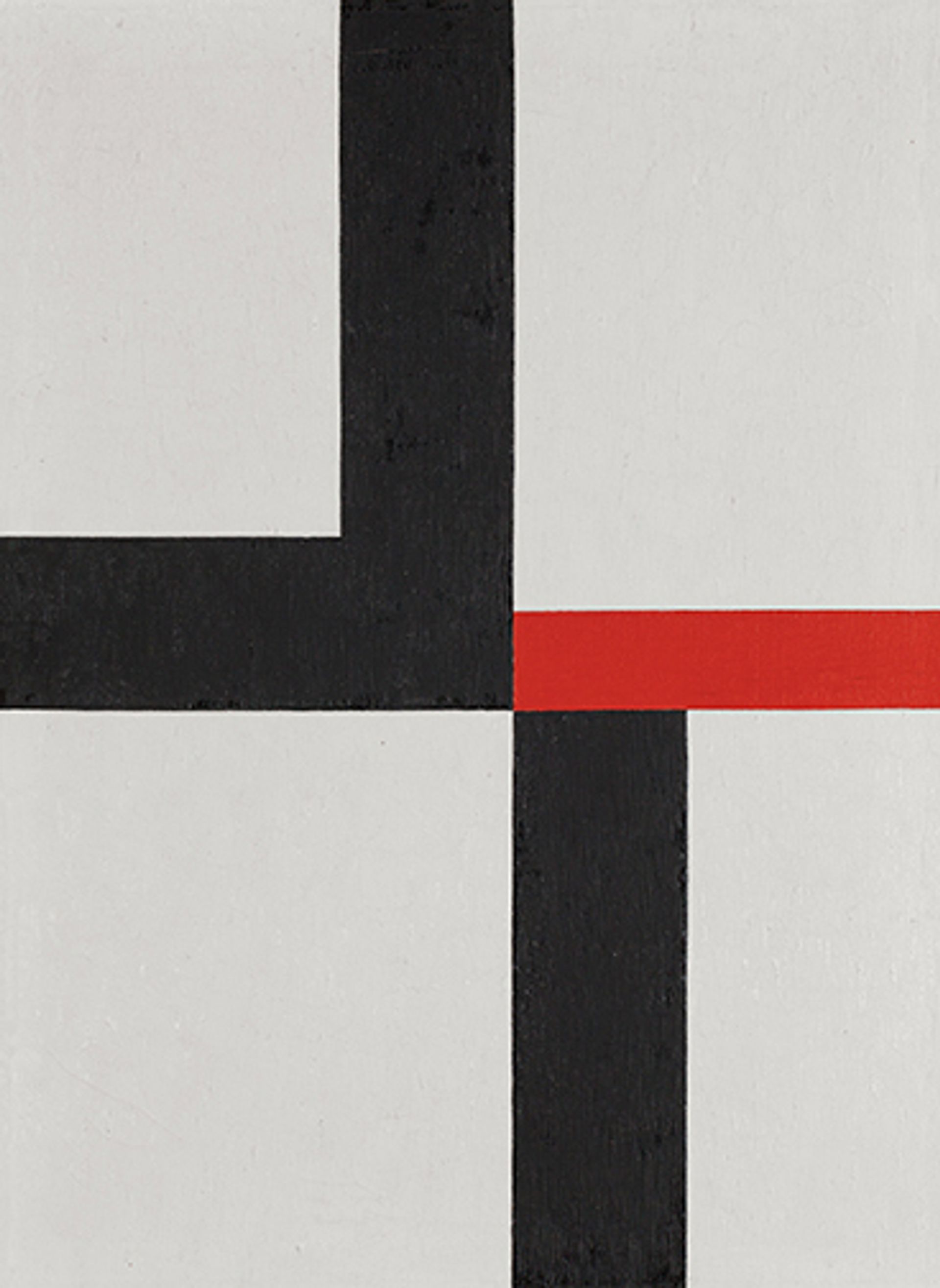 McLaughlin (1898-1976) evidently thought it axiomatic that no form or configuration should appear larger or smaller, optically nearer or more distant, than its physical measure on a picture surface. Nothing should look in any degree scenic or anecdotal. At most—or at worst, he might have said—a properly abstract painting ought to evoke nothing more than another sufficiently abstract work, as his painting #6-1970 calls to mind Kazimir Malevich's Black Square (1915) and V-1957 appears to dream an asperity implied by (but unachieved in) De Stijl.