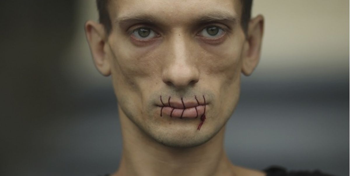 Known for his extreme performances, Pavlensky is a vocal opponent of the Russian government, which he seeks to show as dictatorial and totalitarian. In the past, he has sewn his lips shut in a protest against the imprisonment of fellow activist-artists Pussy Riot, rolled naked on barbed wire, nailed his scrotum to the pavement of Moscow’s Red Square and cut his ear lobe. He has been taken to court multiple times, and served seven months in prison last year for the “destruction of an object of cultural heritage” after setting fire in November 2015 to the entrance of the FSB security service headquarters.