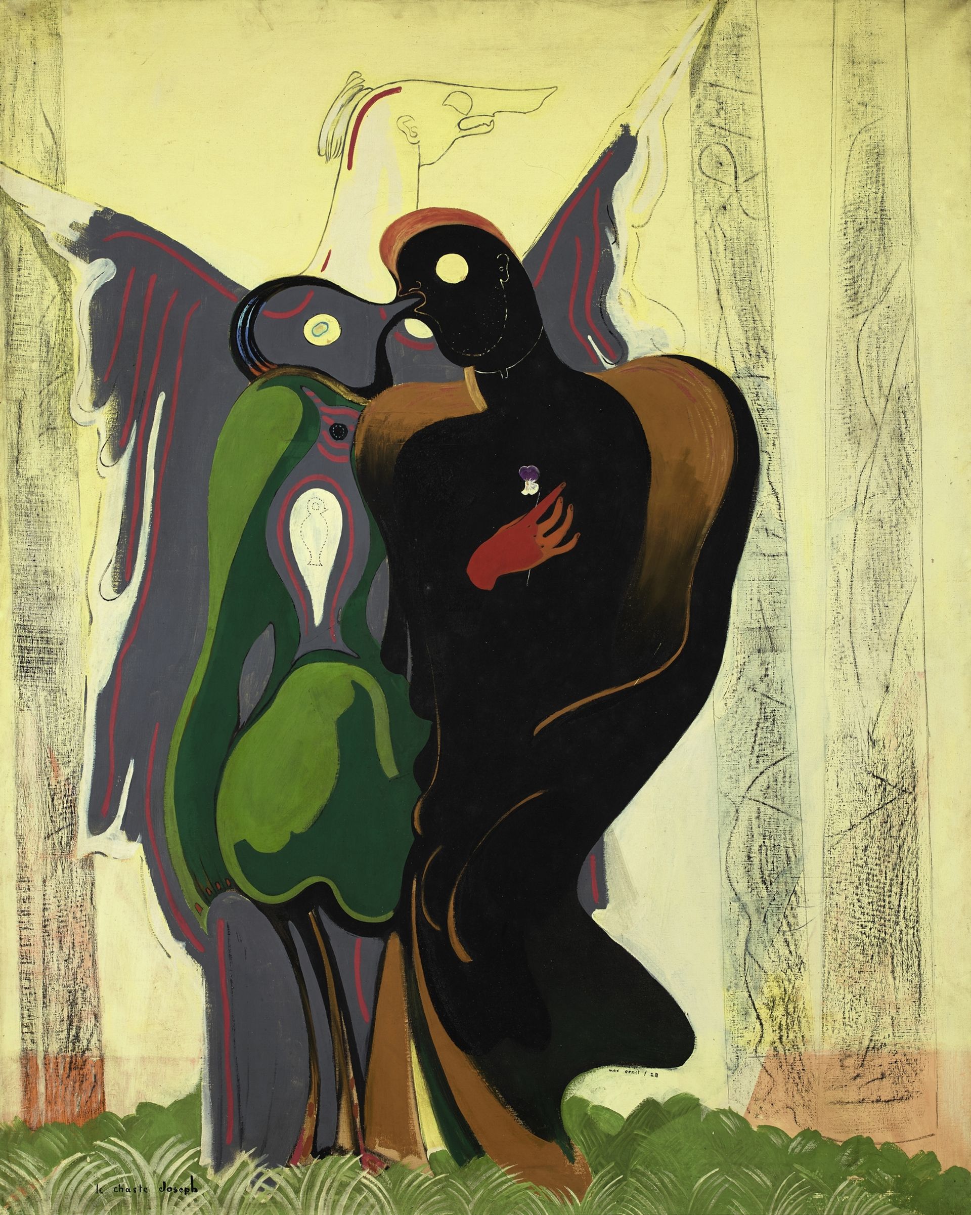 The centrepiece of the group, half of which are still in their original frames created by Ernst, is the large-scale Le Chaste Joseph (1928), which is loosely based on an account in the Old Testament. Most of the 11 were shown at The Matthiesen Gallery in 1956, with a few then on view at the Tate’s retrospective on Ernst in 1991.