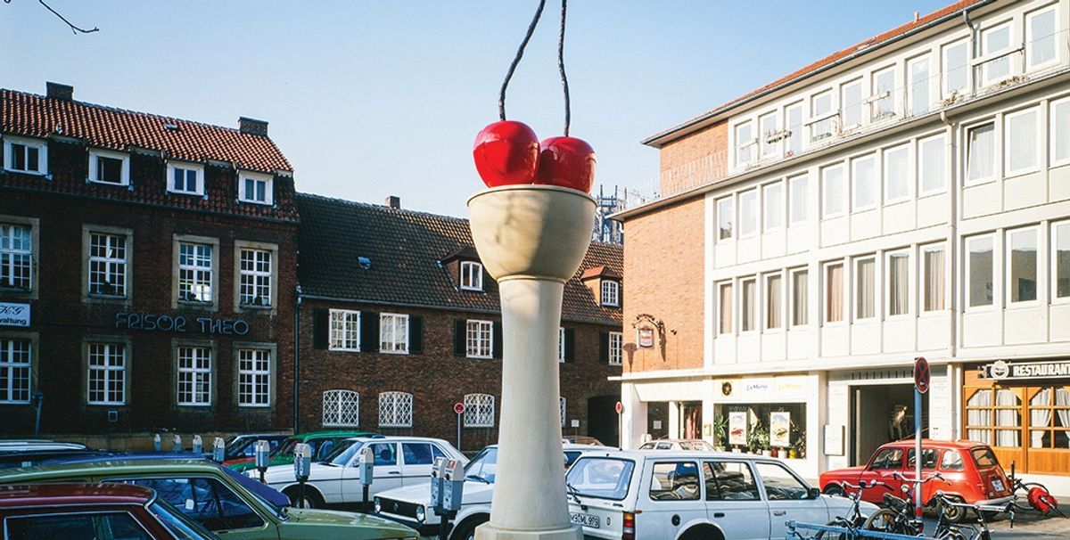 The plans for Marl are still be developed but the German artist Thomas Schütte has offered to create a sibling to his Kirschensäule (Cherry Column), installed for the 1987 edition of SPM, which is now a permanent fixture. At the time he had suggested creating a related column featuring three chunks of melon—this may now be realised in Marl. There are also hopes that the Italian artist Lara Favaretto will produce the next in her series of Momentary Monuments in both cities.