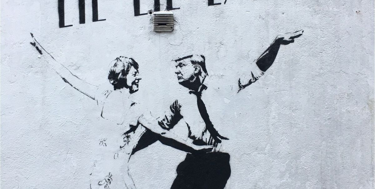 The graffiti artist Bambi has sprayed a mischievous sketch on a wall in Islington, north London, showing President Donald Trump and the UK Prime Minister Theresa May dancing in the style of the stars of the hit musical film La La Land. The work shows the leaders gazing into each other’s eyes doing the jive, just like Ryan Gosling and Emma Stone in the Oscar-nominated movie. Bambi, who is known for her political pieces, says in a statement: “The original film poster for La La Land is pasted everywhere in London—on buses, on bus stops, on billboards—a happy couple dancing without a care in the world. The film was released during a dark political time in our world when our government lied about trident and literally held hands with Donald Trump.” The work can be found at the corner of 40 Cross Street and Shillingford Street.