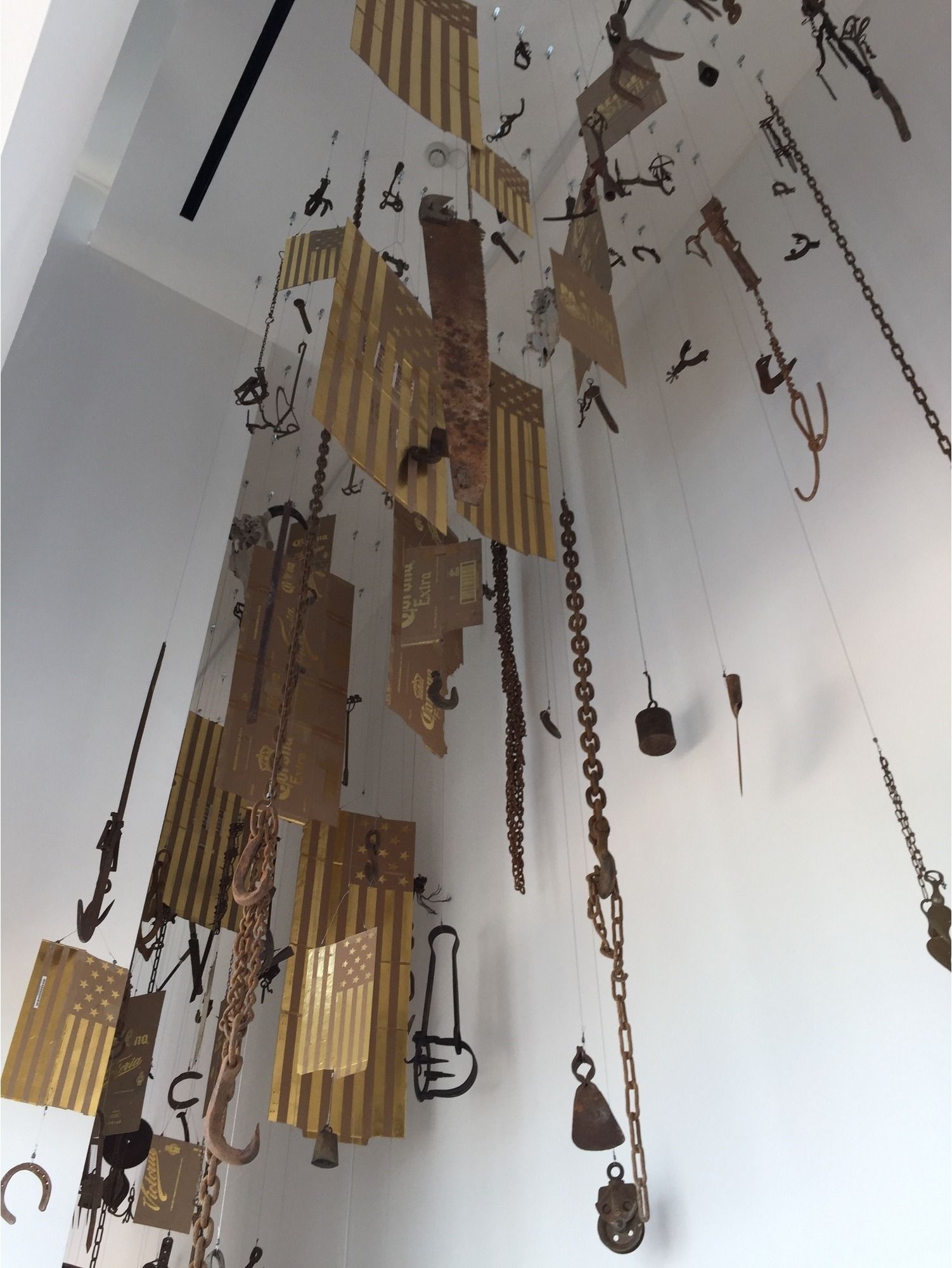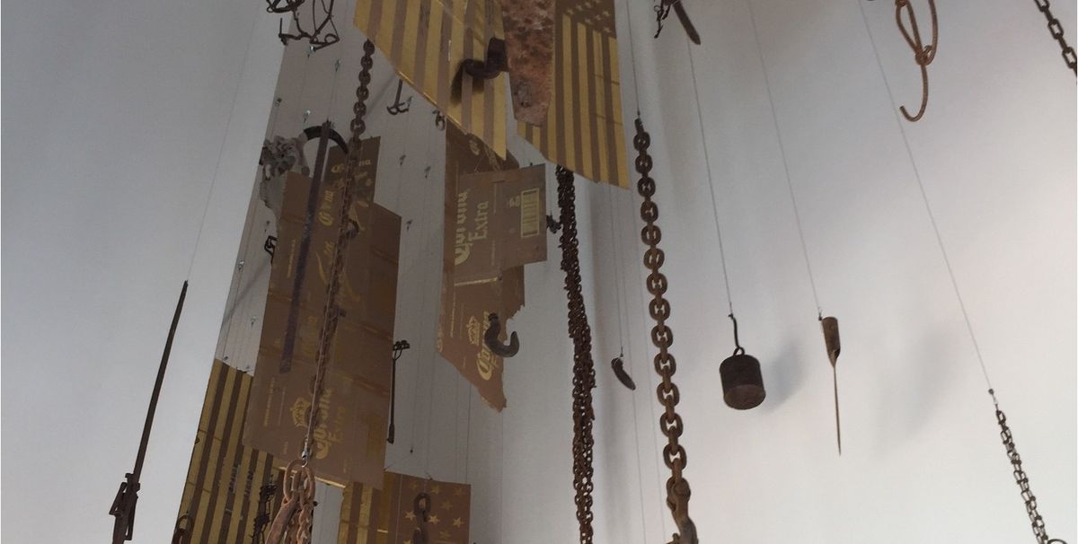 The Vietnamese artist Danh Vo has unveiled a major new work, Untitled (2017), at the Aishti Foundation in Beirut that taps into the fraught political climate in the US today. The installation is made of 27 cardboard US flags coated in gold leaf and suspended from the ceiling. Each flag depicts 13 stars, representing the 13 British colonies that declared independence in 1776 leading to the birth of the United States of America. Motifs for Mexican beer brands are emblazoned on the reverse.
