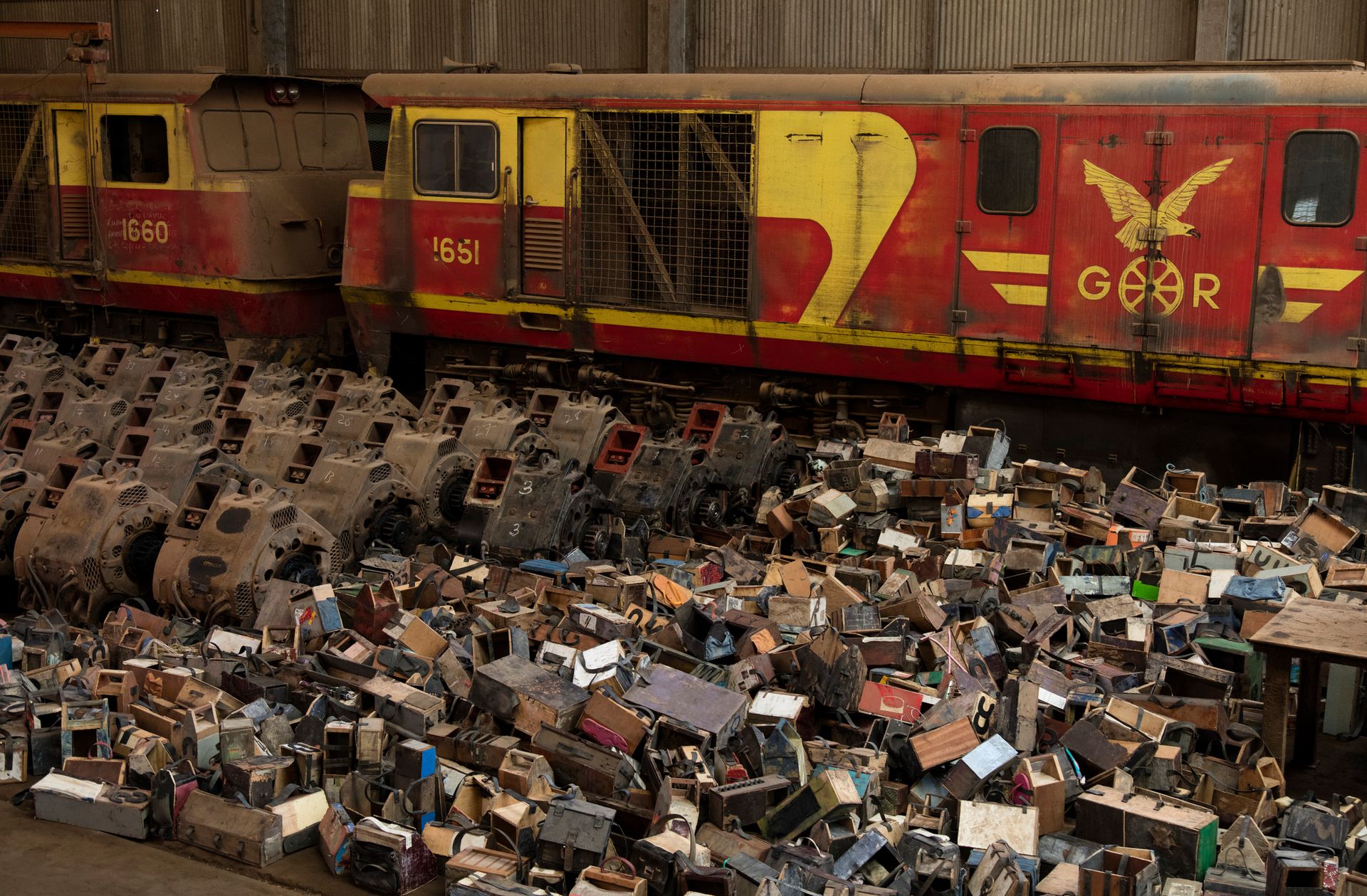 The boxes contain a multitude of objects such as the original tools used to repair shoes and the slippers worn by the repairmen to do their work as well as new objects inserted by Mahama’s assistants, for example, old issues of the Economist magazine. “The wall contains a narrative of post-independence society,” explains the artist, and deals with issues such as political crises and gentrification: many of the boxes were originally made with materials found on building sites or in houses slated for demolition to make way for new developments. “A lot of residues come out of those spaces,” says the artist.