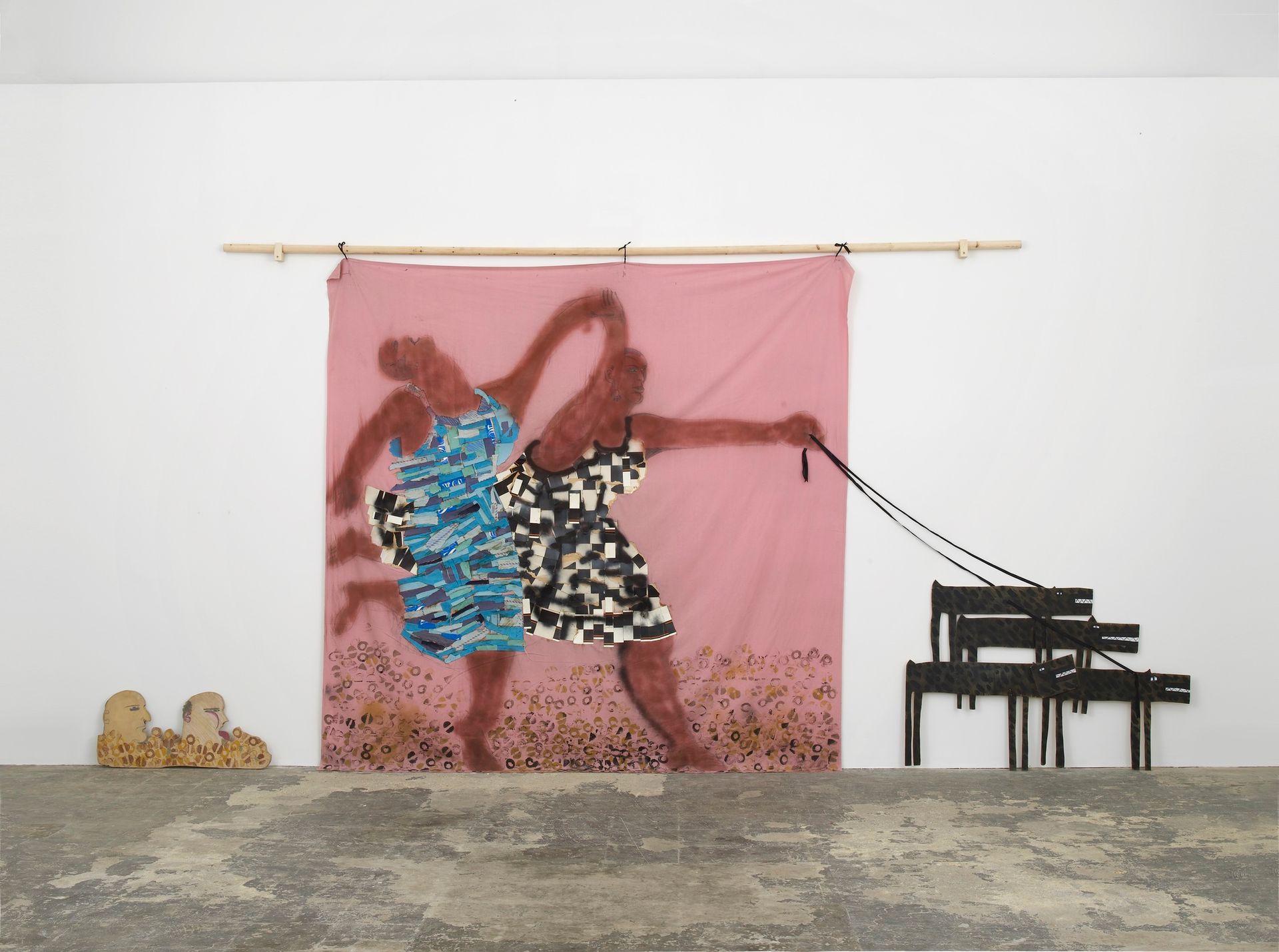 In this compelling, unsettling show all the works feed into and off each other, sparking a chain reaction of potent associations. Something devastating seems already to have happened to the pair of life-sized mannequins that dangle from a nearby wall, kept aloft by the force of electro-magnets which are intermittently turned off, causing them to crash resoundingly onto the floor. There is more bodily action in a series of new paintings made from flesh-coloured plastic and latex depicting the gloopy primeval forms of naked male figures having extravagant sex with themselves and each other, as well as in the arrival—at regular weekly intervals—of young naked male performers who calmly interact with the exhibits.