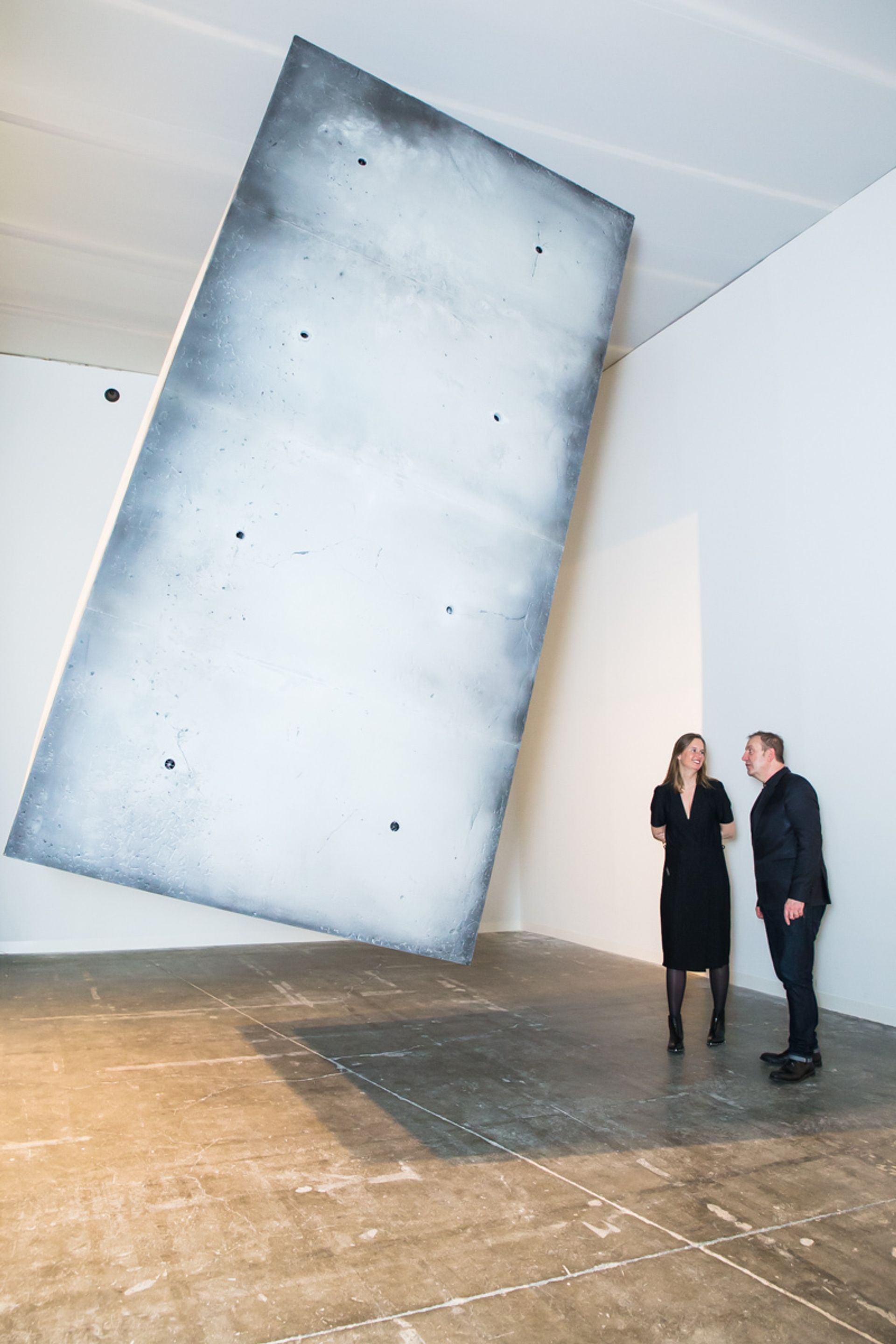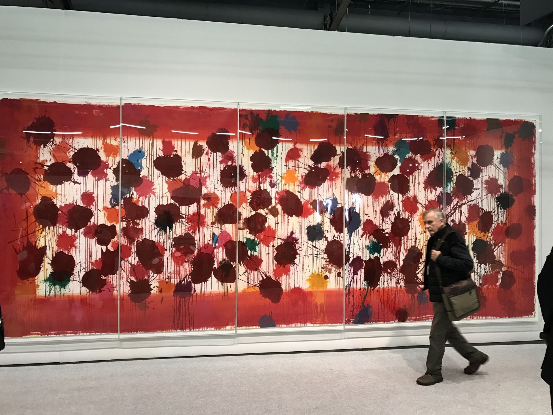 Size Matters With so much art on display, it can be hard to entice visitors into any specific booth. A number of dealers went the big-and-shiny route, building booths around a major work, resulting in traffic and spectacle on opening day. This was the case with Pace Gallery, which forewent a normal booth to show Drifter (2017), a work by the collective Studio Drift that consists of a concrete block that levitates within a prescribed space as if carried aloft on air currents. Its asking price was $350,000, and director Mollie Dent-Brocklehurst notes it will be uniquely choreographed for the buyer’s home or institution. (Studio Drift also produced an augmented reality piece with Microsoft’s Hololens for Artsy, across the fair.)