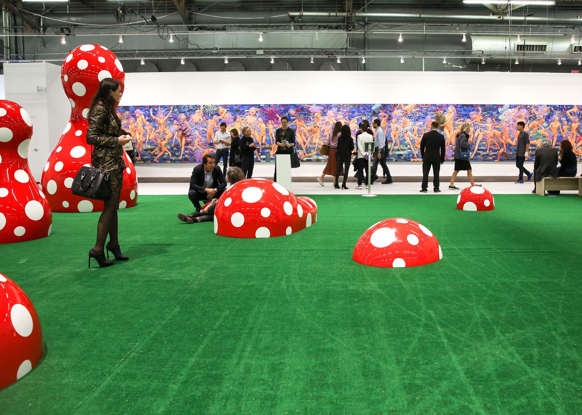 Although large-scale sculpture is standard at a many other fairs, Shiner’s selections are carefully calibrated for maximum impact. Yayoi Kusama’s forest of polka-dotted Plexiglas sculptures on Astroturf, Guidepost to the New World (2016), was said to have been sketched on a napkin for the fair, but all the same is sure to be a hit on Instagram (and good luck keeping climbing kids off them this weekend).