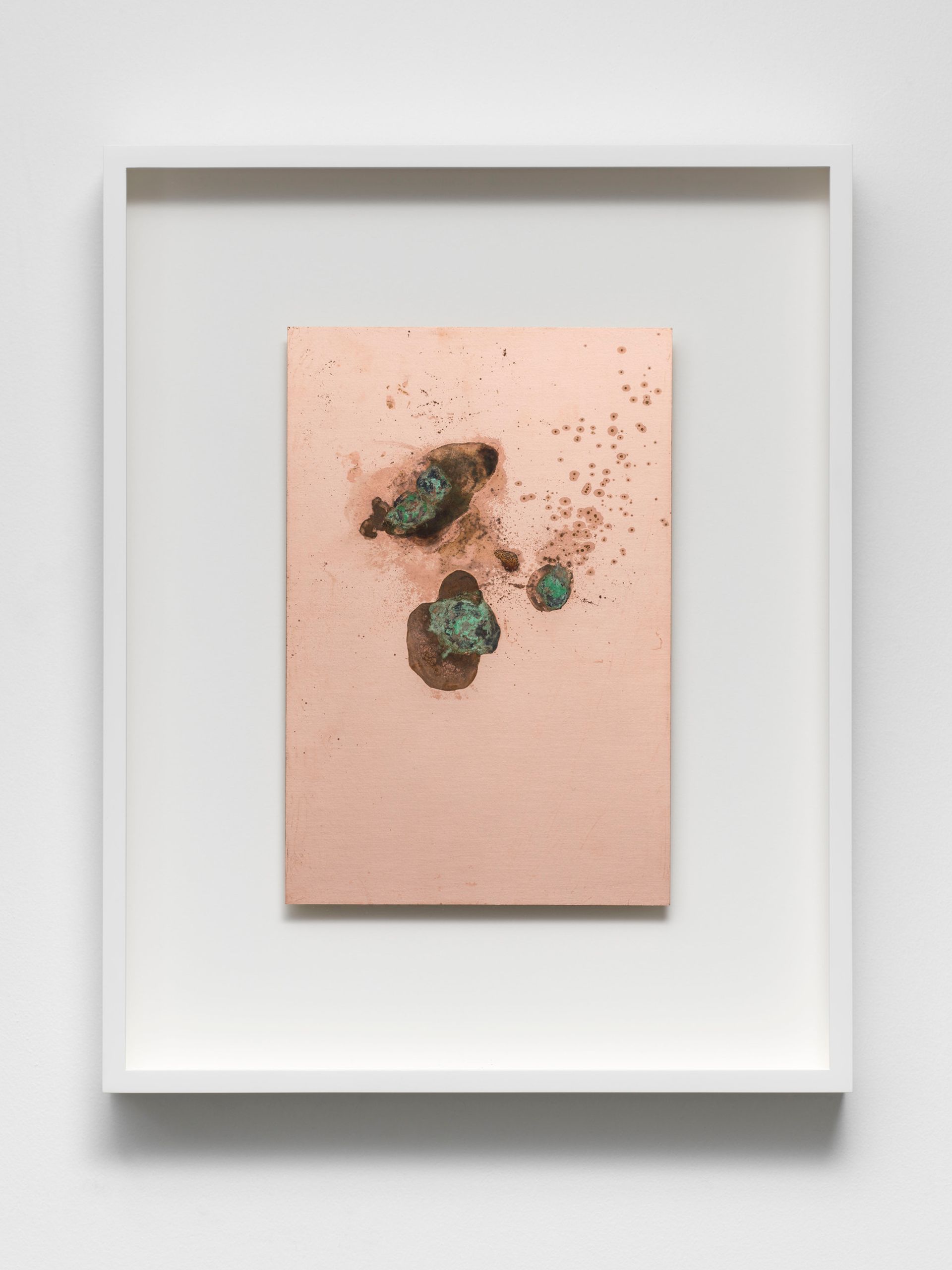 Other notable commissions include Cosmos and Supernova by Haroon Mirza, a series of “electro-etchings” made by placing a peyote cactus on blank circuit board material and running an electrical current through it. As the alkaloid-rich juices of the cactus oxidise the copper in the circuit board, it leaves an etched print that “graphically resembles the cosmological clusters that are not too dissimilar to the kinds of visions these plants produce in humans, if consumed”, Rue says.
