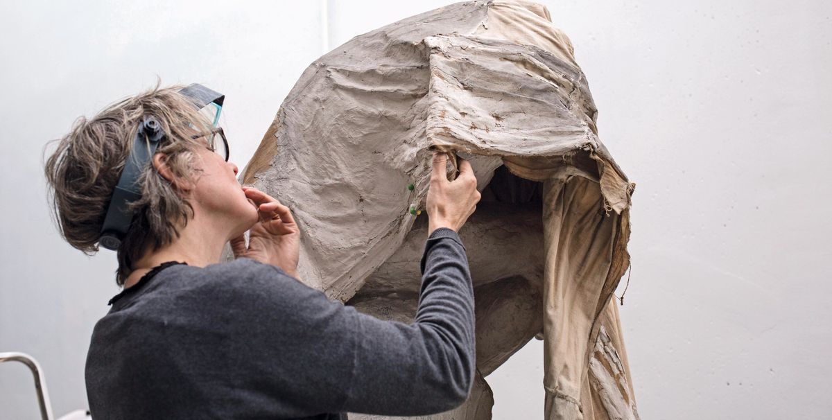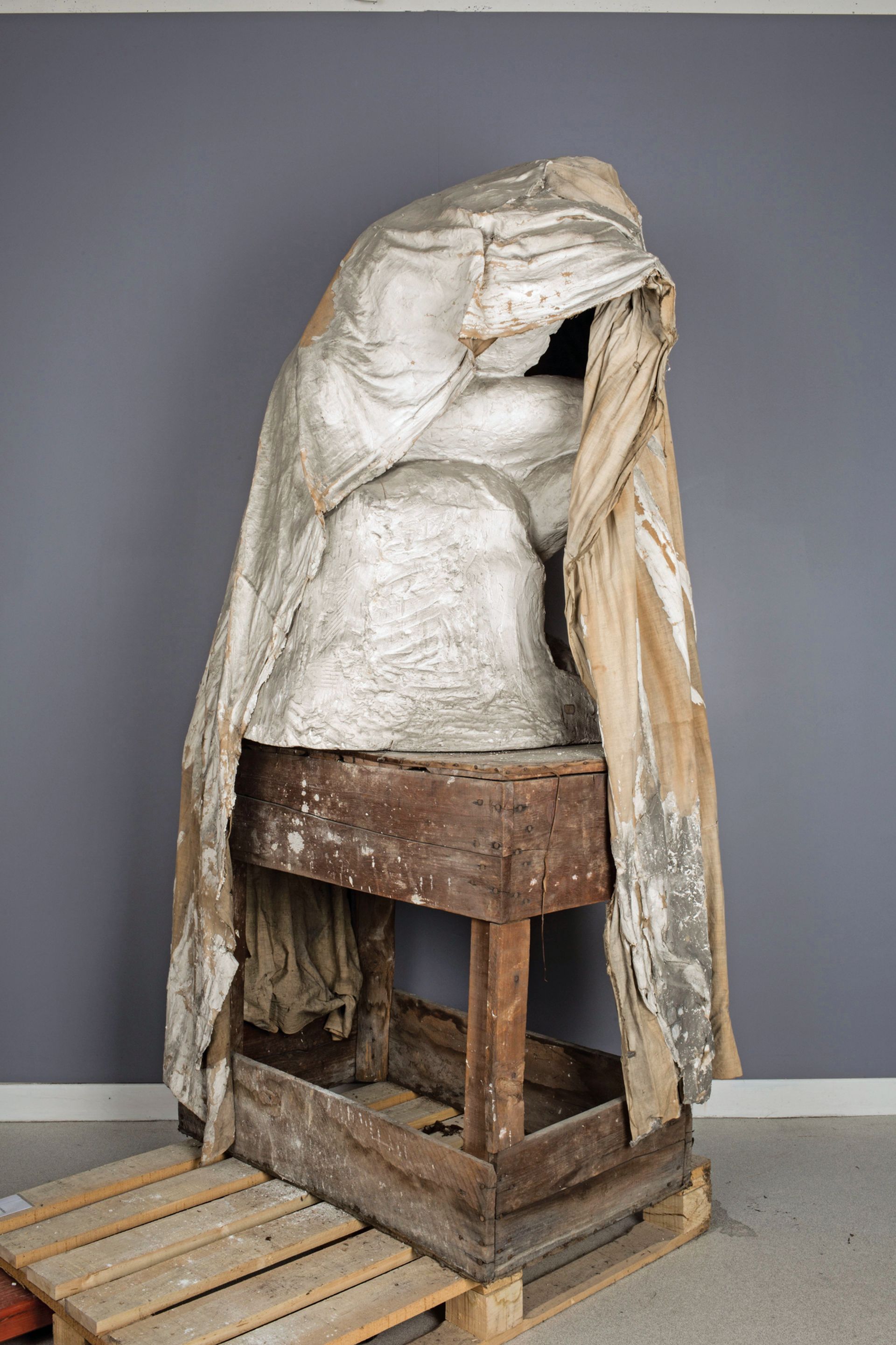 This fabric is the most fragile part of the 2m-high work. The sculptor lightly fixed it to the three sculptures (a torso, head and a rock) with wet plaster. “He did not fix it well because the plaster was thin, which allowed the fabric to move over time,” Lancestremère says.