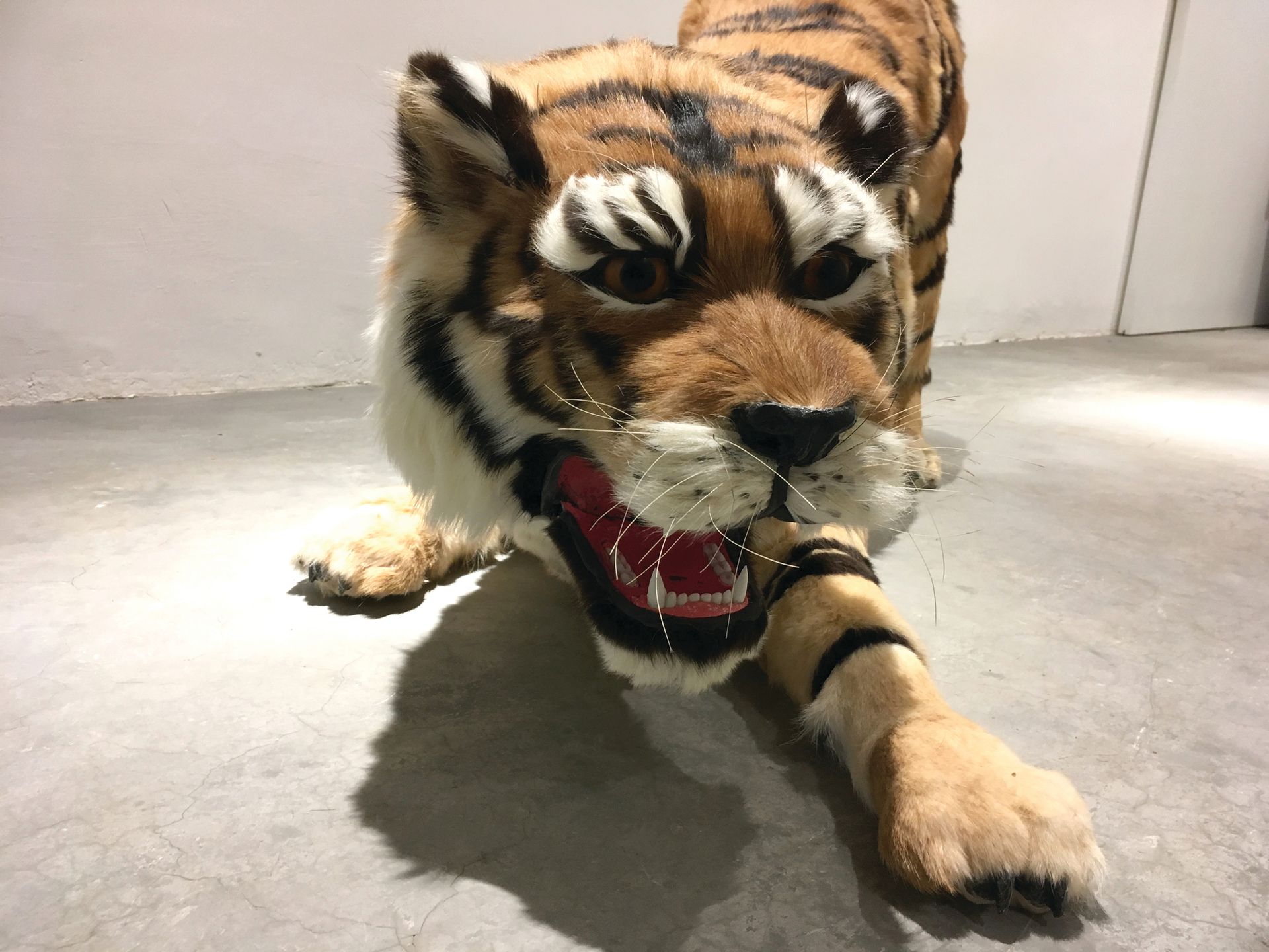 Filled with technicolour Chinese rock formations and kitschy mythological creatures, Tiger Balm Gardens was one of Hong Kong’s most revered parks. Built in 1935 by the developers of Tiger Balm ointment, it was later converted into an amusement park. Since demolished, the gardens still loom large in the collective consciousness of Hong Kong people. Adrian Wong has resurrected an unusual version of the park at K11 Art Foundation’s Chi art space. The Hong Kong-based artist has created an immersive environment evoking a Chinese landscape painting with a rock garden, Chinese instrument recordings and a monumental neon light installation inspired by city streets. In the centre of the space, an animatronic tiger on a cliff appears ready to pounce. Wong says that from the mainland Chinese government’s perspective, the menacing animal could symbolise the threat of Hong Kong’s “insidious Western culture and call for democracy”.
