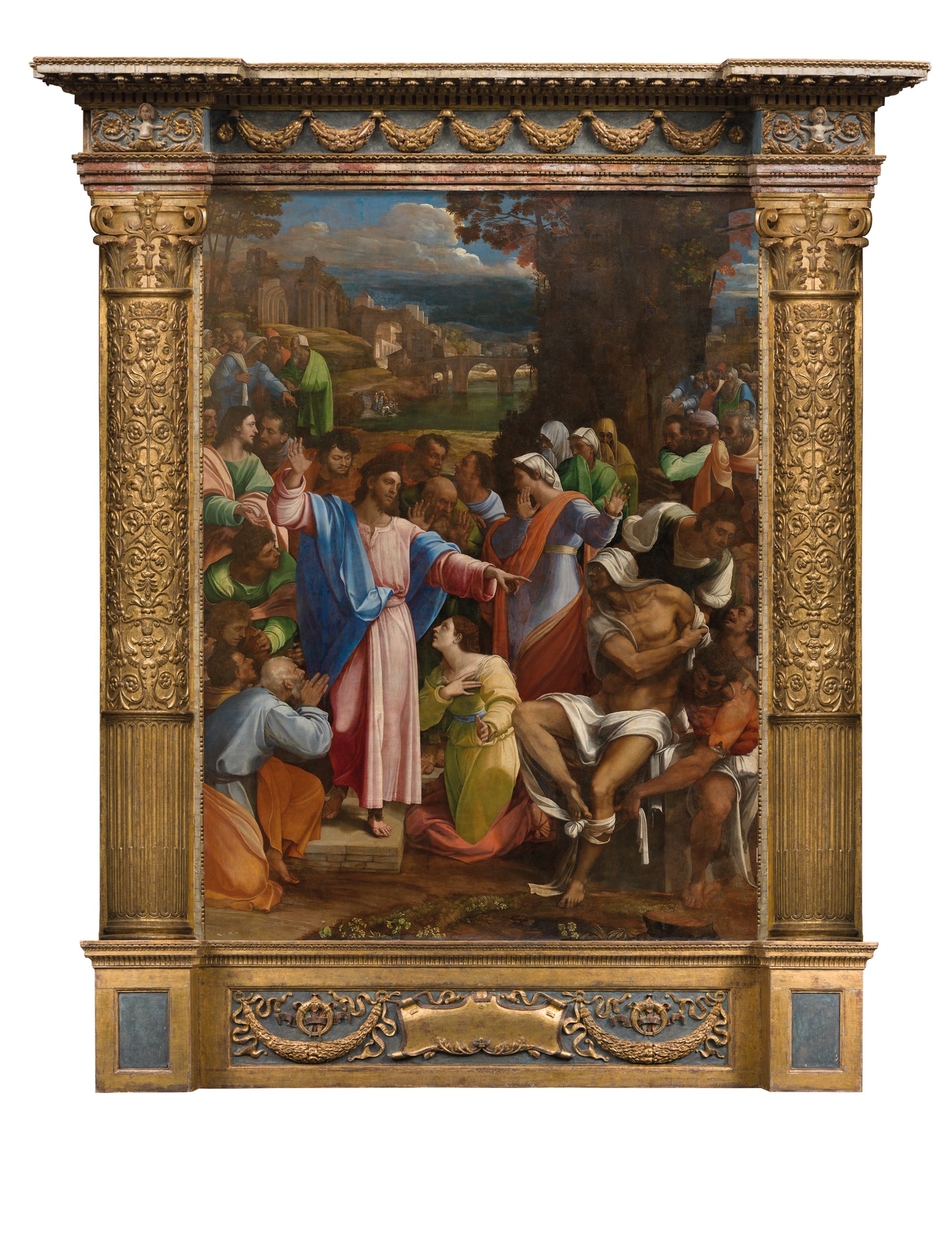The heart of The Credit Suisse Exhibition: Michelangelo & Sebastiano at the National Gallery, London (until 25 June), is the gallery’s own painting, The Raising of Lazarus (1517-19) by Sebastiano. Not only is it the largest work on display (9ft 5in x 12ft 5in / 289.6cm x 38cm), it is also revealed in a magnificent new frame. But size and array are incidental to the reality that this work embodies: without Michelangelo, Sebastiano would have little to recommend him.
