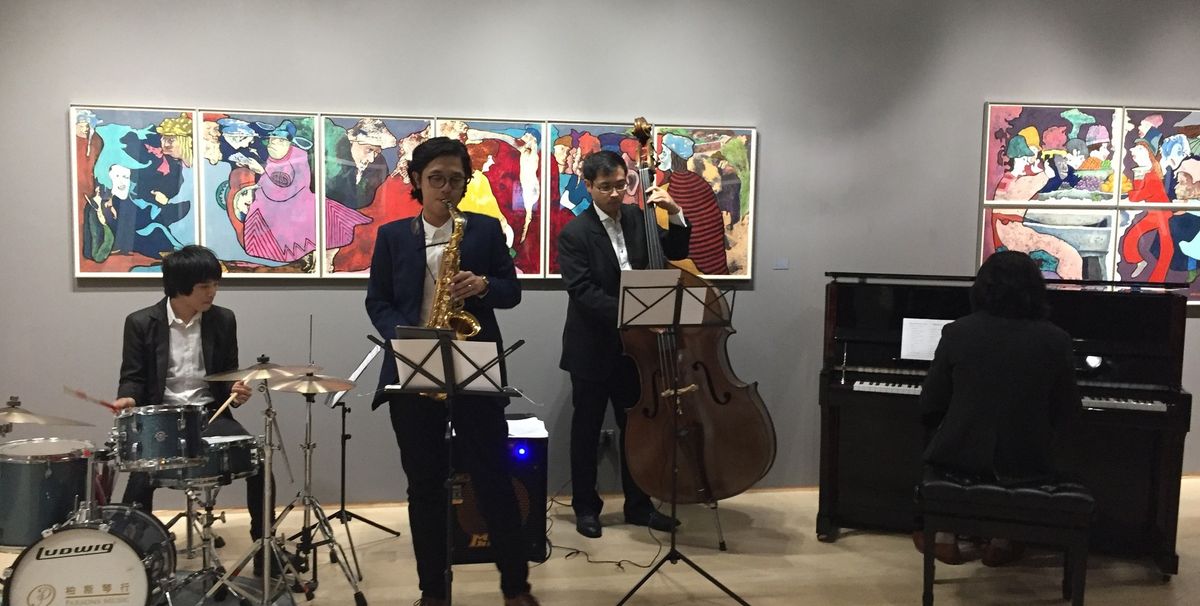 The crème de la crème of Hong Kong's art world was out in force last night (20 March) in the city's Central district, with hordes of art lovers descending upon the Pedder Building where several galleries launched exhibitions coinciding with the launch of Art Basel Hong Kong. At Hanart TZ gallery, a live jazz band was regaling bemused guests attending the Luis Chan retrospective. "The musicians are a group of close friends and musical prodigies," a gallery spokeswoman tells us (one of Chan's favourite expressions was: "One must never serve friends moon [‘boring’ in Cantonese] cakes!"). At Simon Lee gallery, there was a lot of blah blah blah about…. some blah blah blah paintings by US artist Mel Bochner (overheard: “This guy’s bang on about the art circus.”). Over at White Cube gallery on Connaught Road, Theaster Gates was in an exuberant mood. His show features sculptures and paintings that “incorporate the processes and materials of roofing”. The work A Transgressive Wyoming (2017), looks like a map of the US. “It was vertical,” Gates says. “It panned out that way…. It’s a little bit like America,” quipped the Chicago-based artist regarding his jaunty take on Uncle Sam.