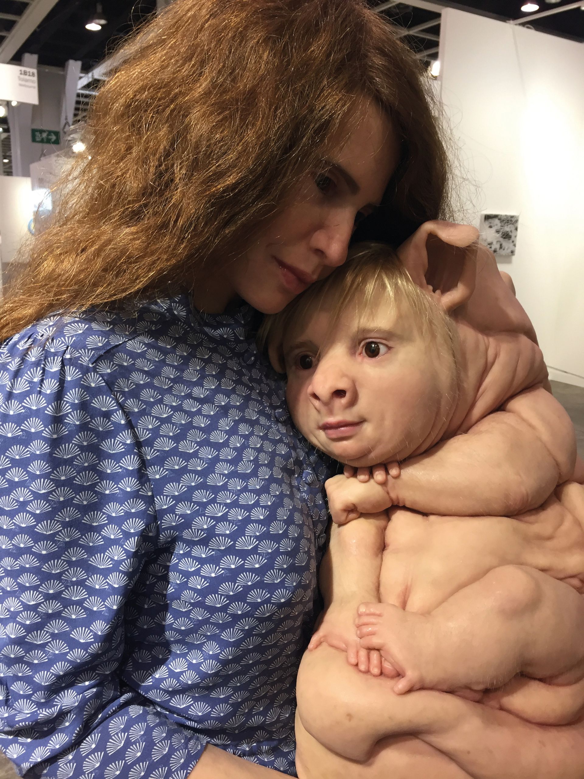 A face only a mother could loveFair visitors are revelling in, and recoiling from, the Australian artist Patricia Piccinini’s alarmingly realistic sculpture of a mother holding a mutant pig-like creature with a cherubic face and disfigured torso. The Bond (2016), at Tolarno Galleries' stand, “continues my longstanding fascination with emotional connection and empathy”, the artist says. One observer likened the piece to a 21st-century Madonna and Child, but another emitted an audible “yuck!” on seeing the blonde wisps of hair protruding from the baby behemoth’s ears and nostrils.