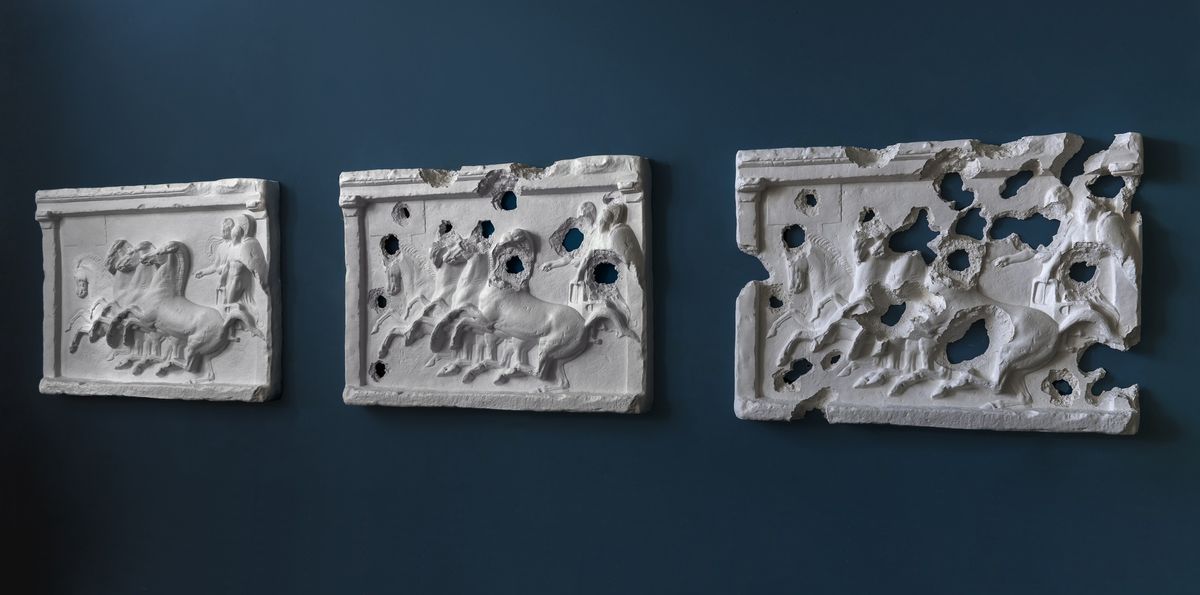 Last year, under the protection of Kurdish Peshmerga soldiers, the British artist Piers Secunda travelled to Iraqi villages recently liberated from Isis control. He made moulds of the bullet holes he found riddling the walls of the village buildings, and used these to create a series of plaster cast sculptures derived from ancient Greek and Assyrian reliefs. Around ten of these diptychs and triptychs are now on view at the Thomas Jaeckel Gallery in New York (6 April—6 May). This is the artist’s first solo show in the US and some of the proceeds will benefit the organisation Kind Aid International, which assists families in Iraq get medical assistance, water and food. The Art Newspaper spoke with the artist about the project, which he says aims to address the effects of violence on cultural heritage sites in the Middle East and around the world.