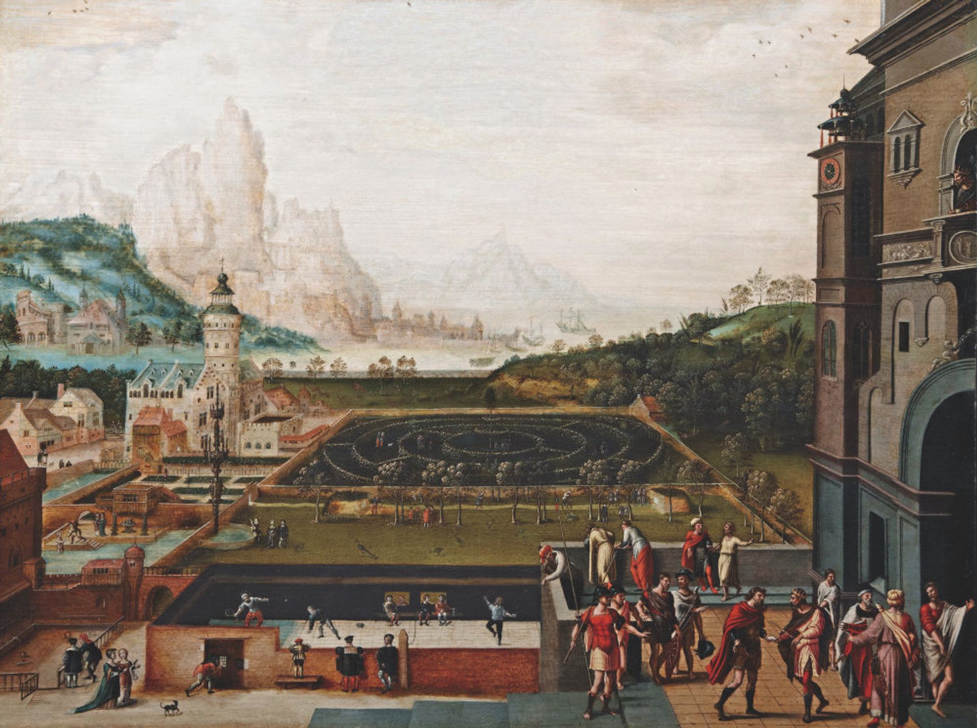 In his painting The gardens of a Renaissance palace, with episodes from the story of David and Bathsheba, the Flemish artist Lucas Gassel updated the Bible story to include several 16th-century courtly activities, such as secret rendezvous in a maze, boule à l’anneau (an early form of croquet) and archery. But what makes this picture particularly interesting is that in the foreground it contains one of the earliest known depictions of a tennis match. The work, priced at €1.25m, had not sold as we went to press.