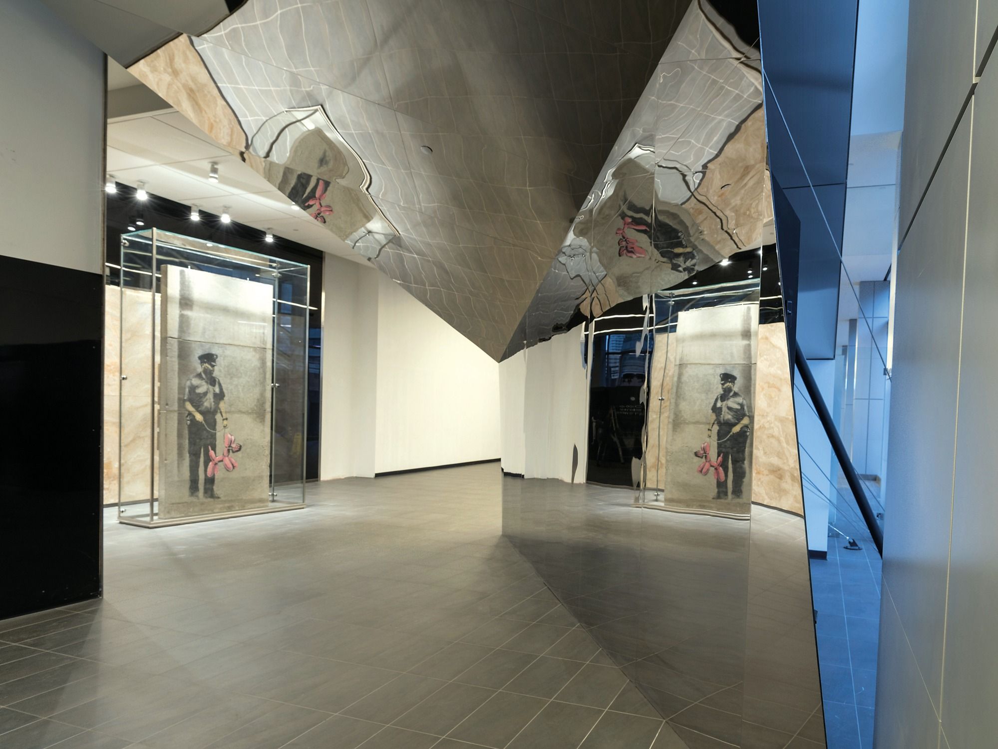 A work attributed to the anonymous British street artist Banksy has been conserved and put on public display in Toronto by a Canadian real estate company. Known as Guard with Balloon Dog, the piece was recently unveiled at its new location in a pedestrian walkway network called the Path. The work originally appeared on the wall of a vacant building in May 2010, around the time that the artist was in town to release his film, Exit Through the Gift Shop, and has reportedly been featured on Banksy’s website. Menkes Developments bought the building, and with it Banksy’s stencil, in 2011 and had the work cut out before clearing the site. “We really wanted to preserve this, firstly because we liked it and secondly because we thought it was a special piece of Toronto,” says the company’s vice-president Jared Menkes.
