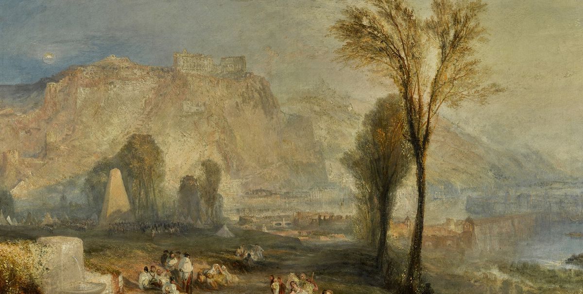 The painting will go on show on 4 and 5 April in Cologne. It shows the ruins of the Ehrenbreitstein Fortress near Koblenz, a region Turner visited several times. On his third Germany tour in 1833, he produced a series of sketches which are the basis for this painting. He was originally commissioned to produce a watercolour for his friend the publisher John Pye, but decided the subject merited a large oil painting instead.