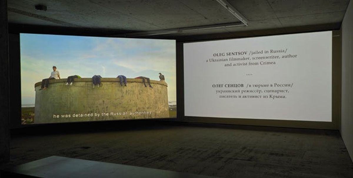 Meanwhile, some Russian artists have tackled Crimea in their work for the triennial. The art group Chto Delat? made a short film entitled Safe Haven, about artists seeking refuge from oppression. It includes the story of Oleg Sentsov, a Crimean film-maker who opposed the Russian annexation and is now languishing in a Russian prison.