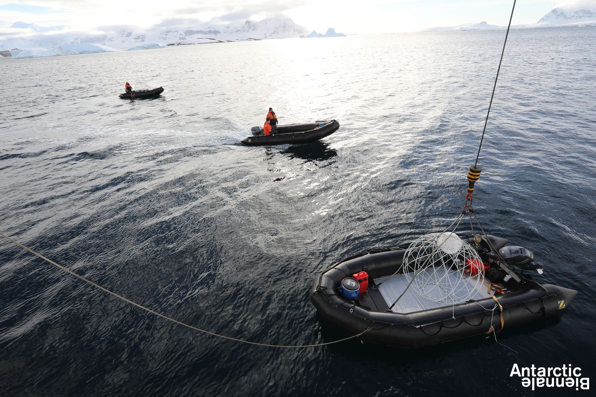 Mexican lunch and everyone having happy snooze. At 4pm it had been a week since we first came up the gangplank and boarded this boat, now our dear old friend. All gather on the back deck for Alexander-the-Great, Pon-Pon lui-même to launch his own underwater art project, ‘Alchemy of Antarctic Albedo (or Washing Pale Moons)’. These submerged lit globes will be lowered into the sea in order “to clean the moon ash”. He happily admits that he is making this work just for the whales, typically generous, “they are a better audience than so many others”. Alexander Sekatsky, his in-house, or rather on-board, philosopher, explaining all the “metaphysical correction” which sounded exciting. Much masculine labour, heaving and pushing, to get the moon-balls out to sea, a sweaty, rather laborious form of three-dimensional poetry. We went out in our Zods but of course could not see anything of the project because it was all underwater, made for the fishes rather than mere humans. However the two Argentine underwater divers, fantastic moustachioed veterans straight out of Hemingway, who had been very dismissive and suspicious of the whole thing, were actually impressed, touched, transformed by seeing the reality. Which makes it a successful art work by any definition, and the whales apparently surely adored it also.