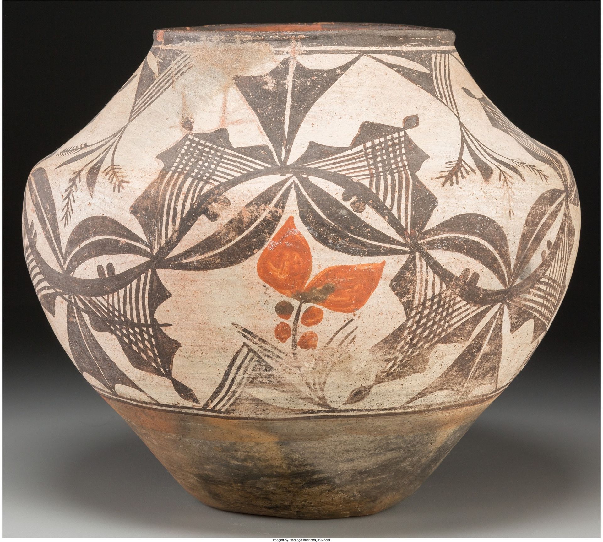 Couse trained at the Académie Julien but ultimately left Paris behind for New Mexico, where he became the founding president of the Taos Society of Artists and a noted painter of Native American subjects. As an added bonus to this prime example the auction house will offer one of the original jars depicted in this work, which comes from the artist’s expansive personal collection native crafts. Although the scene appears to be documentary, Couse often sacrificed fidelity for artistry, in this instance costuming his model with a breechcloth, headdress, leggings and moccasins, and staging the room with jars from the nearby Zia Pueblo, renowned for its pottery. The jar that the model is holding recurs in the artist’s work and was salvaged from his home by the collectors Veda and Ward Vickery, who were known for their “impeccable taste” and purchased both works from the artist’s son in 1964. “I’ve never seen a sale of this kind before”, says Aviva Lehmann, the house’s director of American Art. “This is what collectors of Western art want: a work that is in pristine condition and in its original frame, with an impeccable provenance and prop to match”.